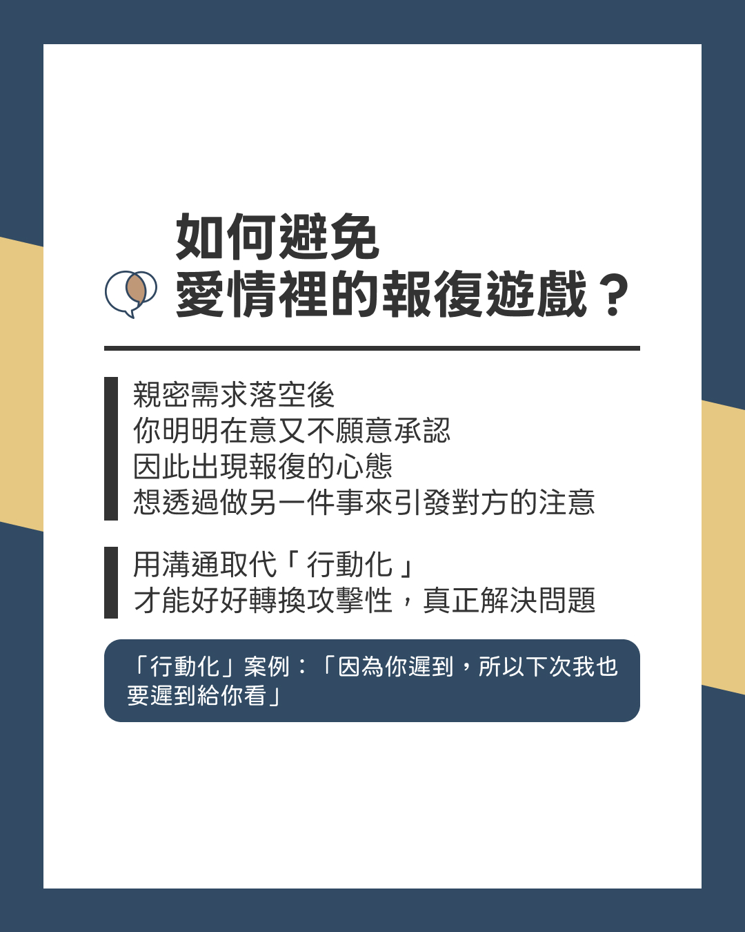 親密需求落空後,你明明在意又不願意承認,因此出現報復的心態,想透過做另一件事來引發對方的注意