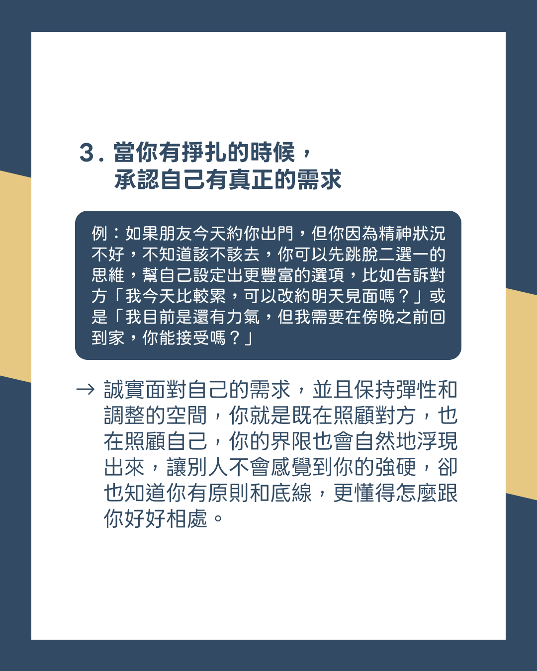→ 照顧自己的真實需求,不是自私的行為,而是一種負責任的表現。
