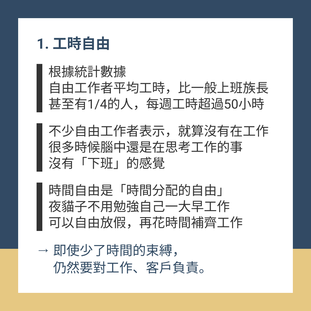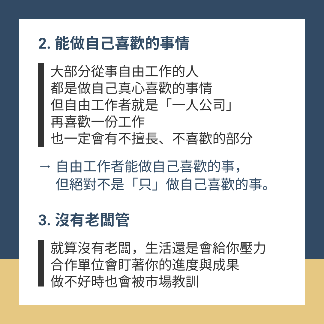 → 自由工作者能做自己喜歡的事,但絕對不是「只」做自己喜歡的事。