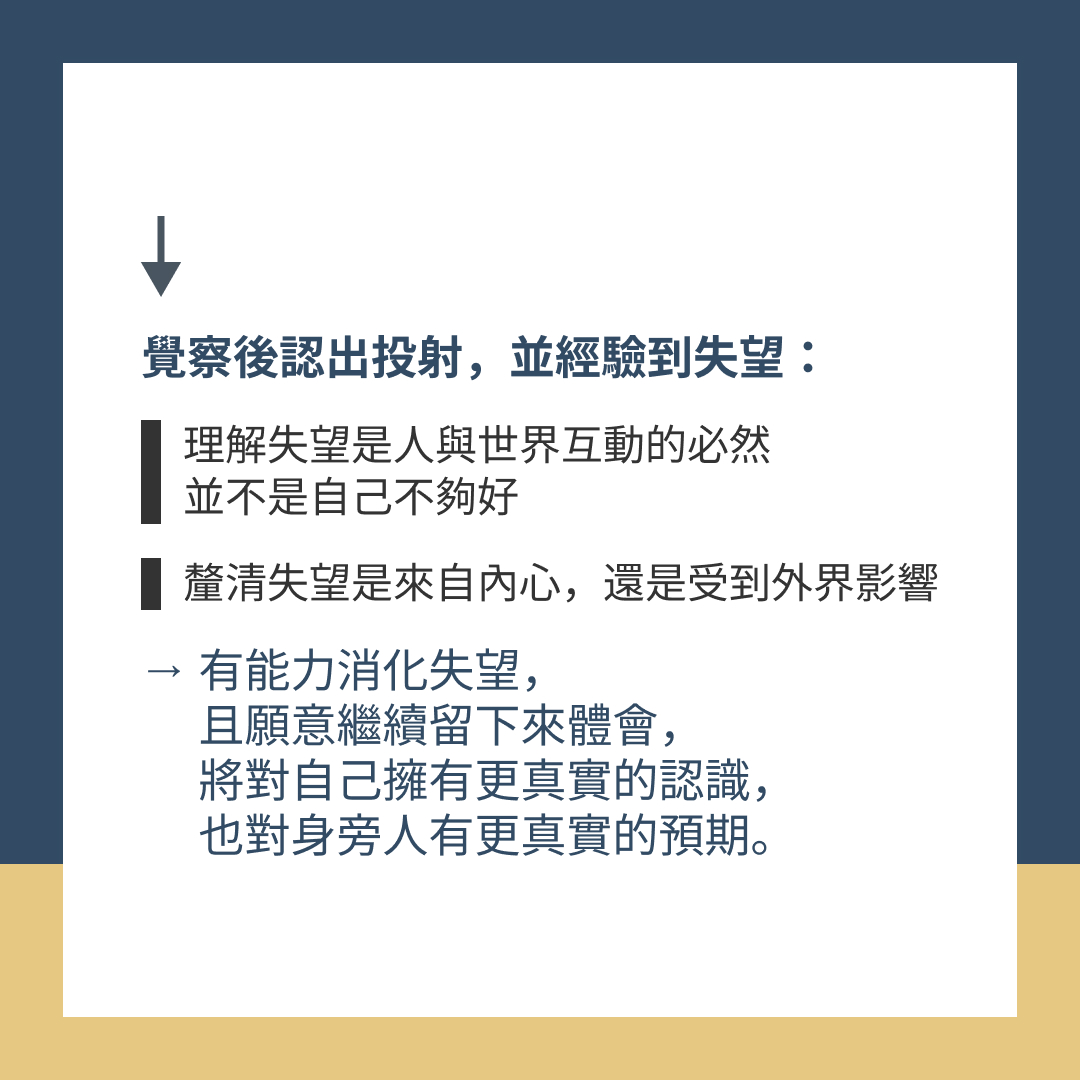 覺察後認出投射,並經驗到失望: