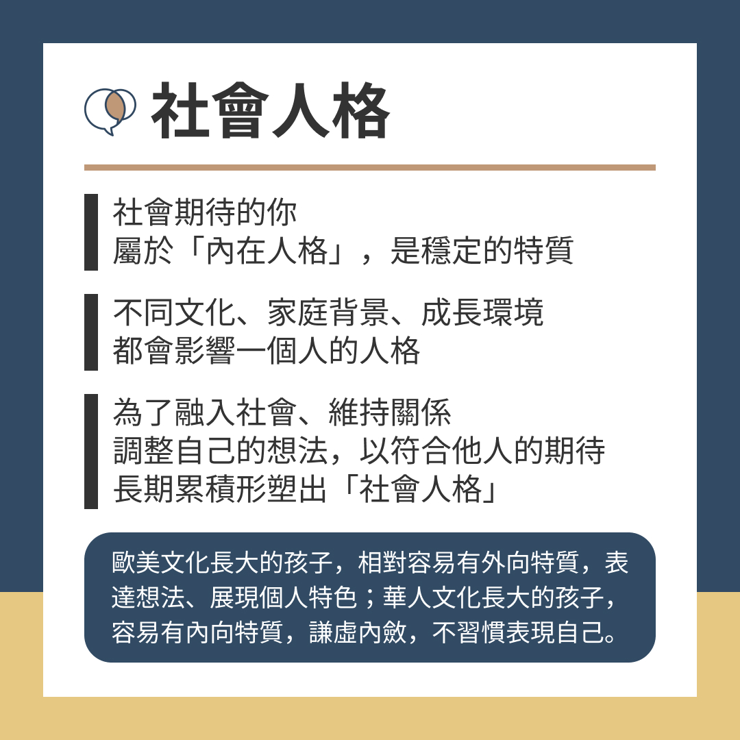 人是社會性動物,為了融入社會、維持關係,我們會調整自己的想法,來符合他人的期待,長期累積形塑出「社會人格」