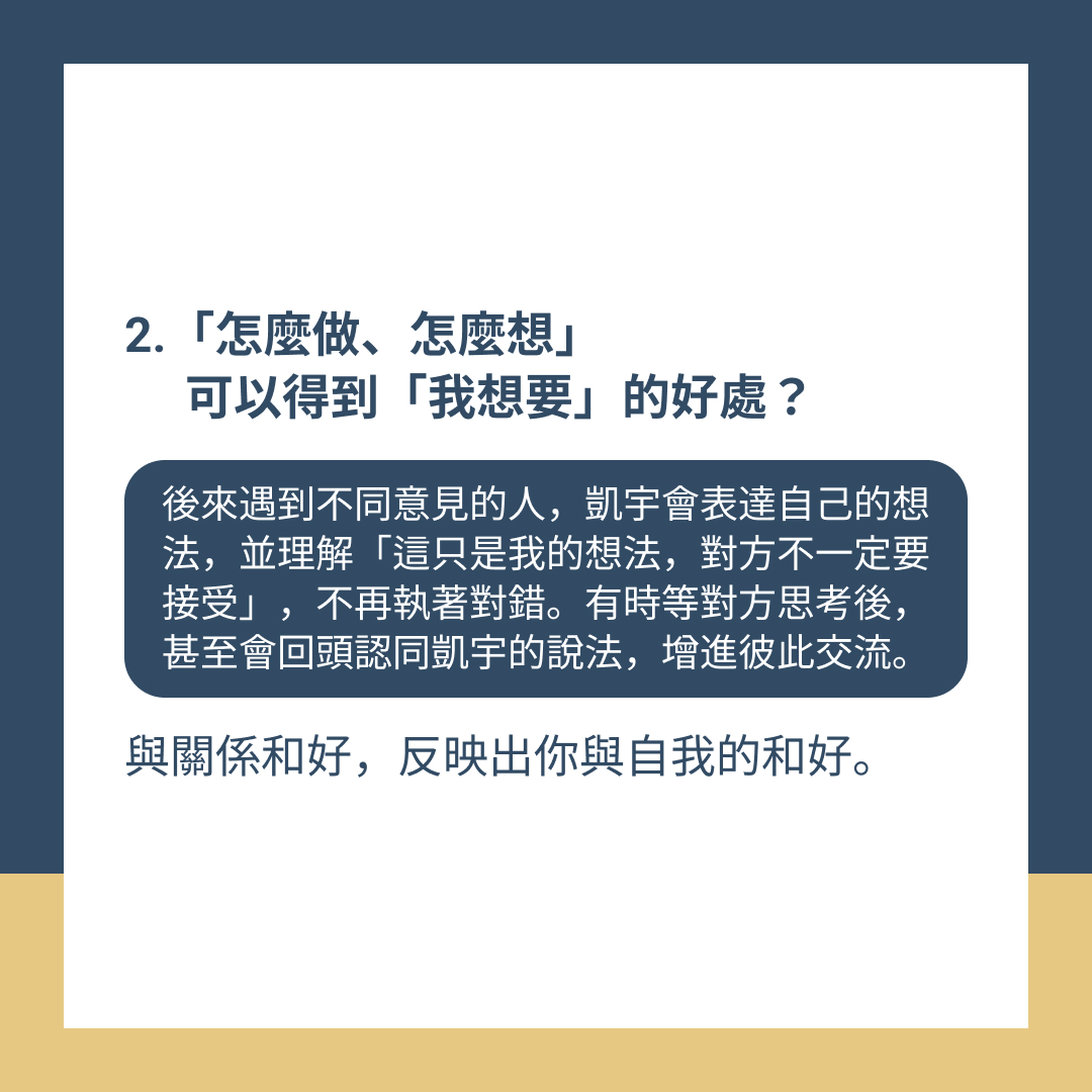 2. 「怎麼做、怎麼想」可以得到「我想要」的好處?