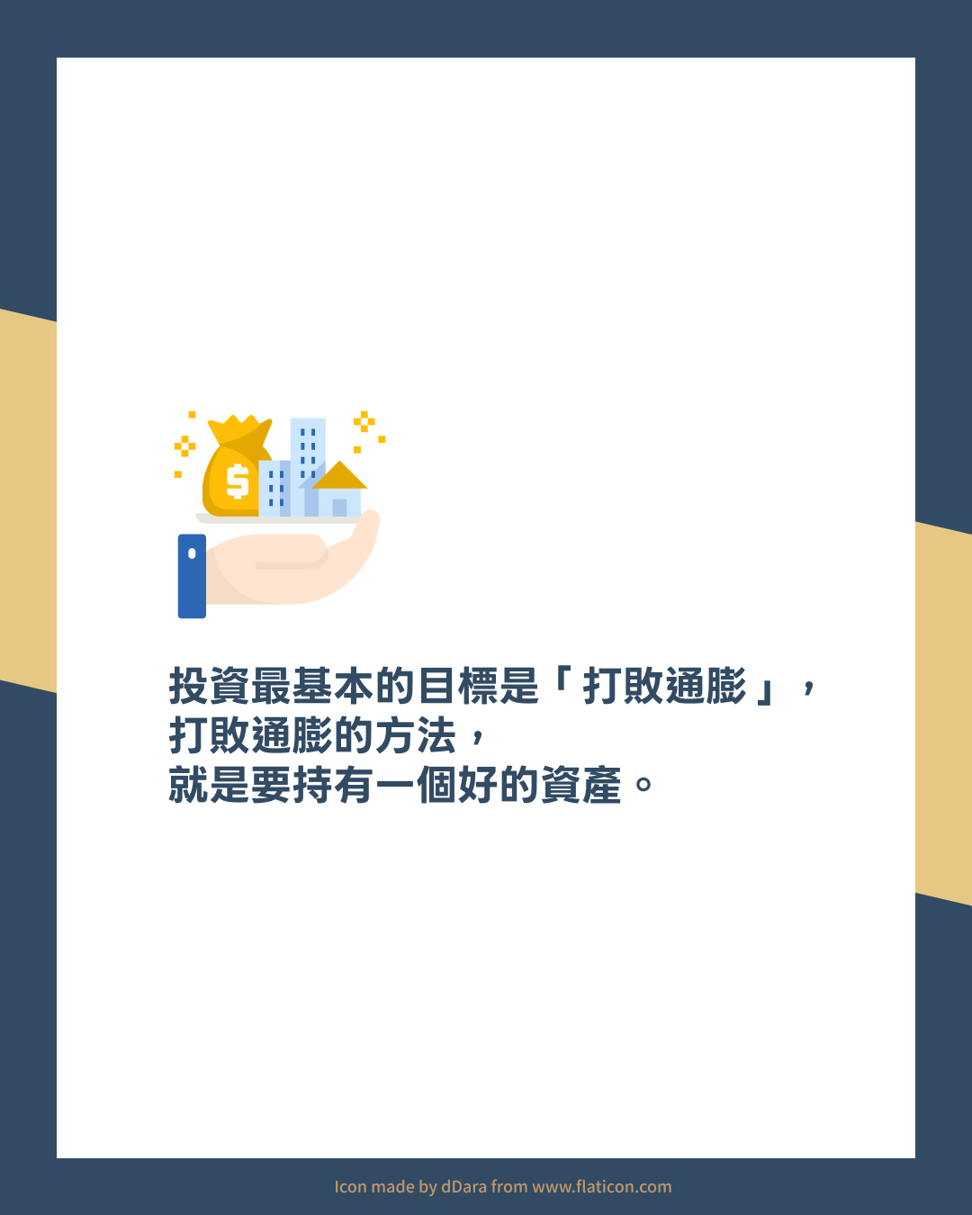 投資最基本的目標是「打敗通膨」,打敗通膨的方法,就是要持有一個好的資產。
