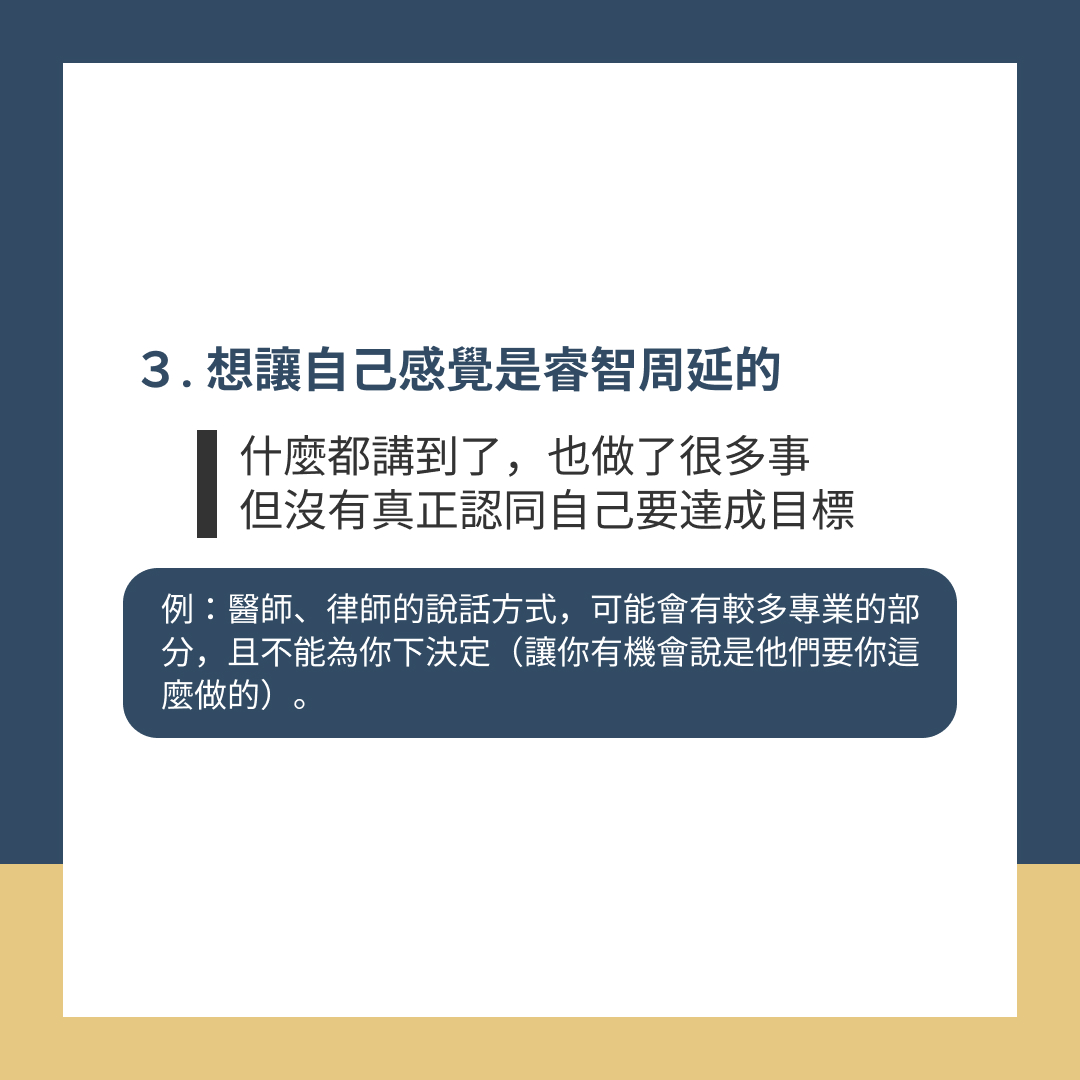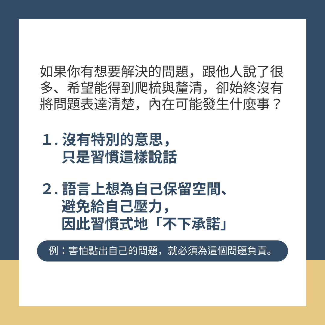 2. 語言上想為自己保留空間、避免給自己壓力,因此習慣式地「不下承諾」