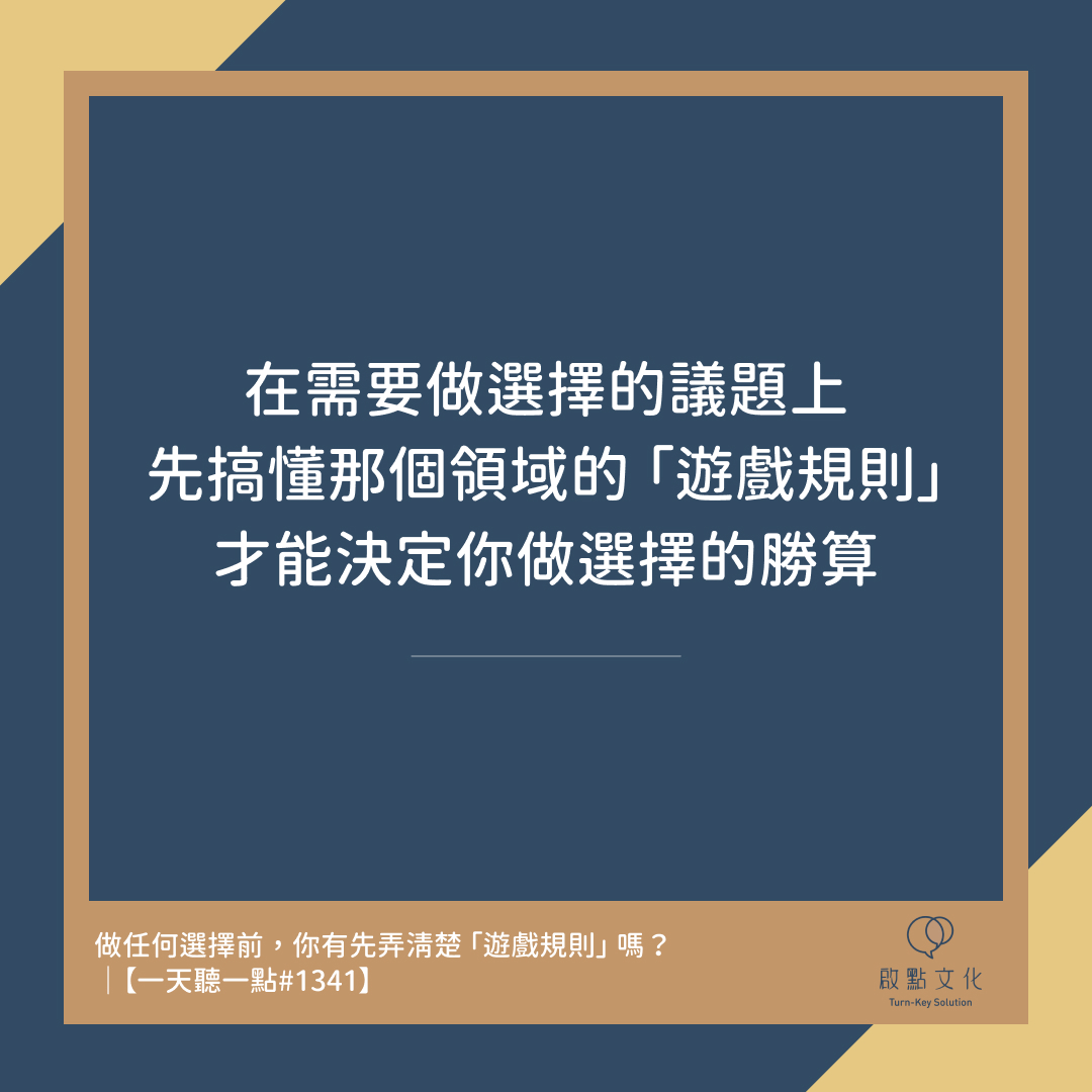 做任何選擇前,你有先弄清楚「遊戲規則」嗎?|【一天聽一點#1341】