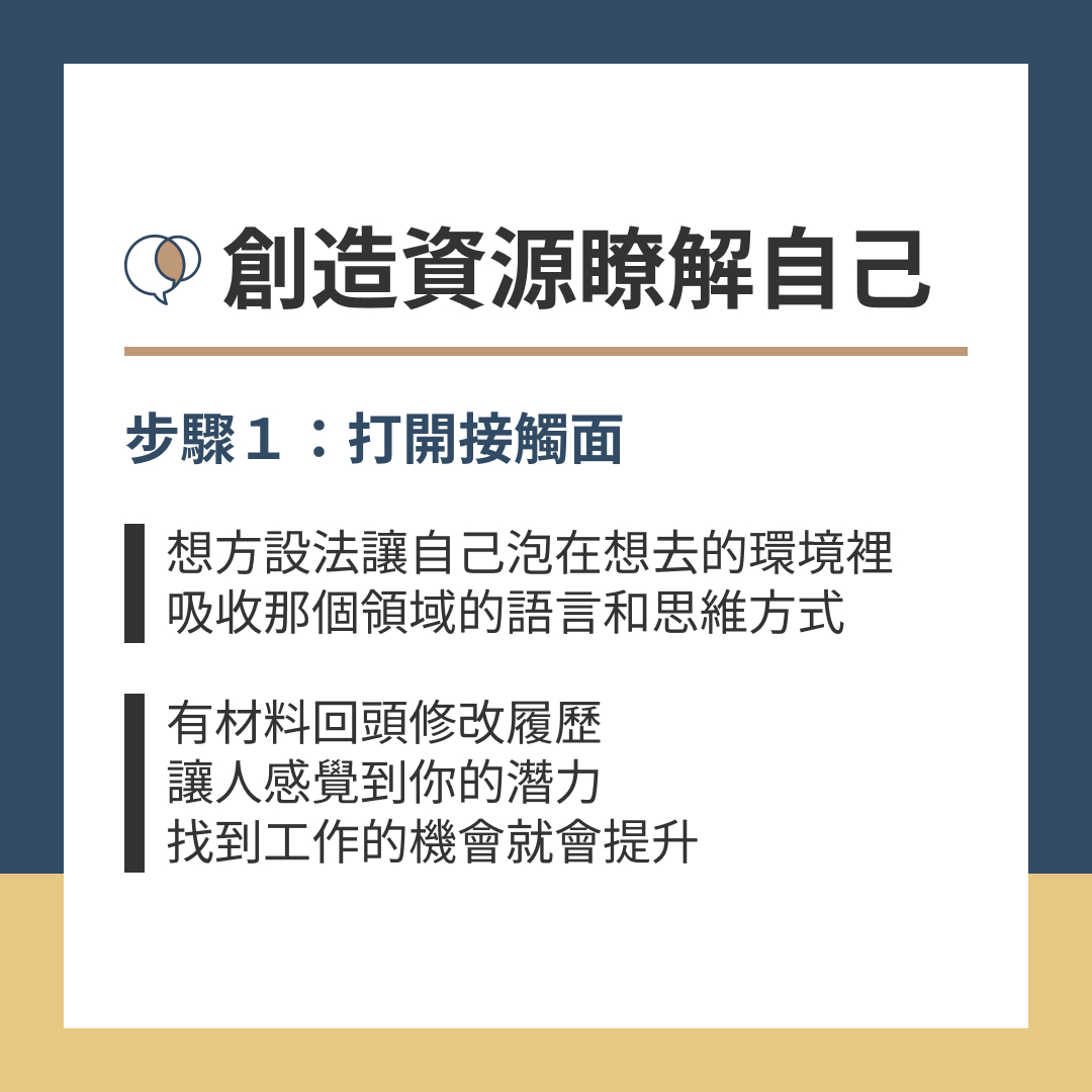 想方設法讓自己泡在你想去的環境裡,吸收那個領域的語言和思維方式