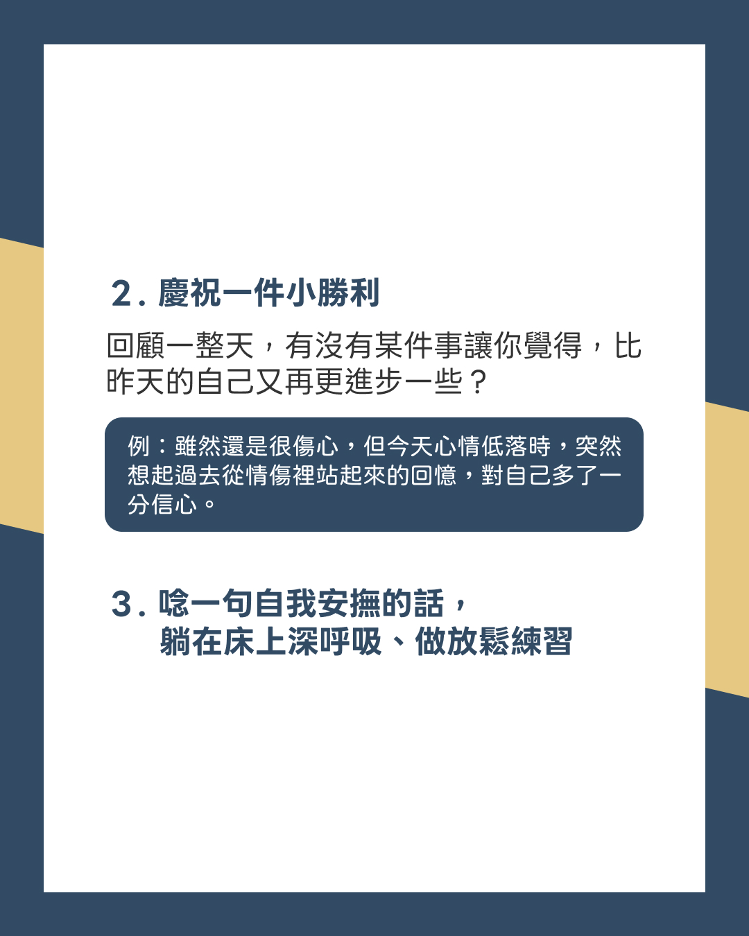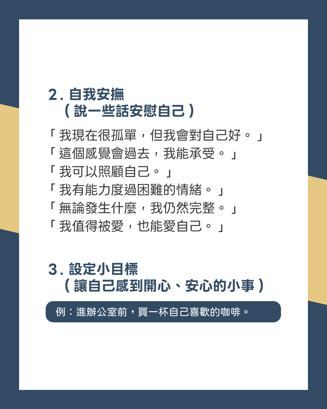 3. 設定小目標(讓自己感到開心、安心的小事)