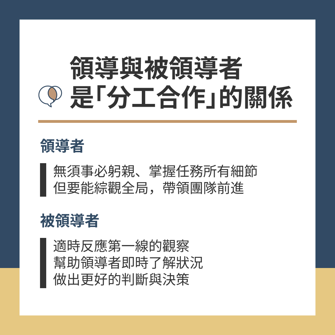 被領導者:適時反應第一線的觀察,幫助領導者即時了解狀況,做出更好的判斷與決策