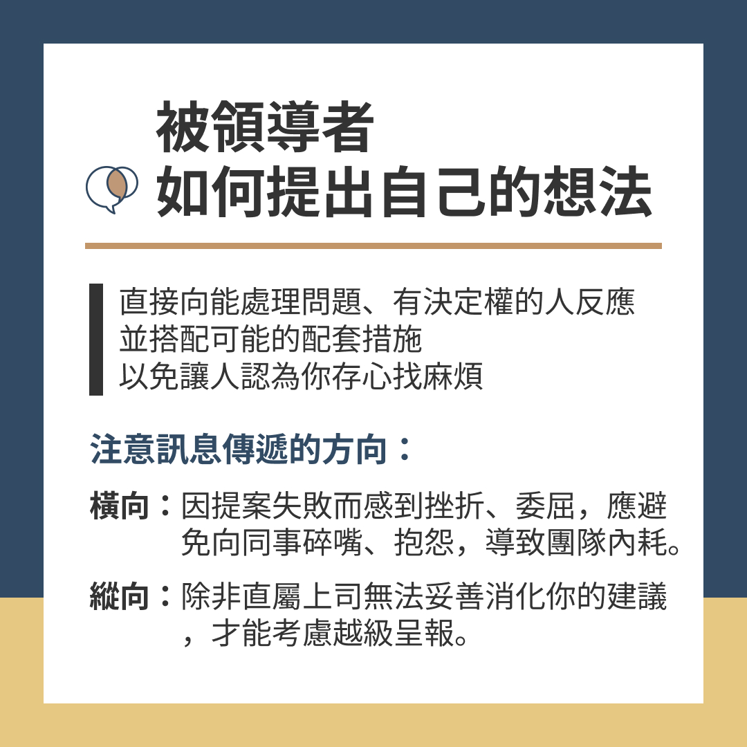 縱向:除非直屬上司無法妥善消化你的建議,才能考慮越級呈報