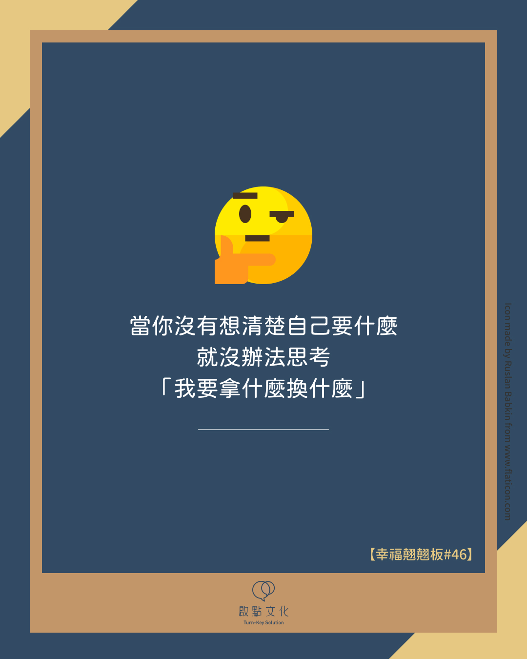 → 當你沒有想清楚自己要什麼,就沒辦法思考「我要拿什麼換什麼」。