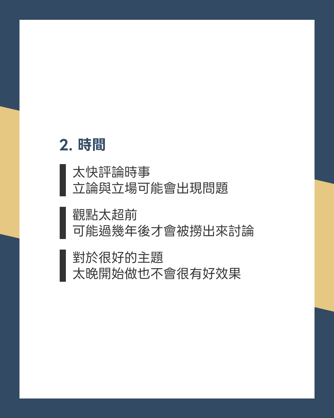 實力累積不夠,即使有好的切點,也可能撐不起這個主題