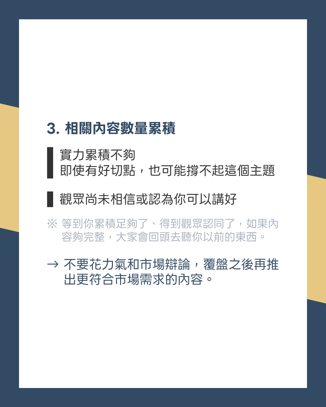 → 不要花力氣和市場辯論,覆盤之後再推出更符合市場需求的內容。