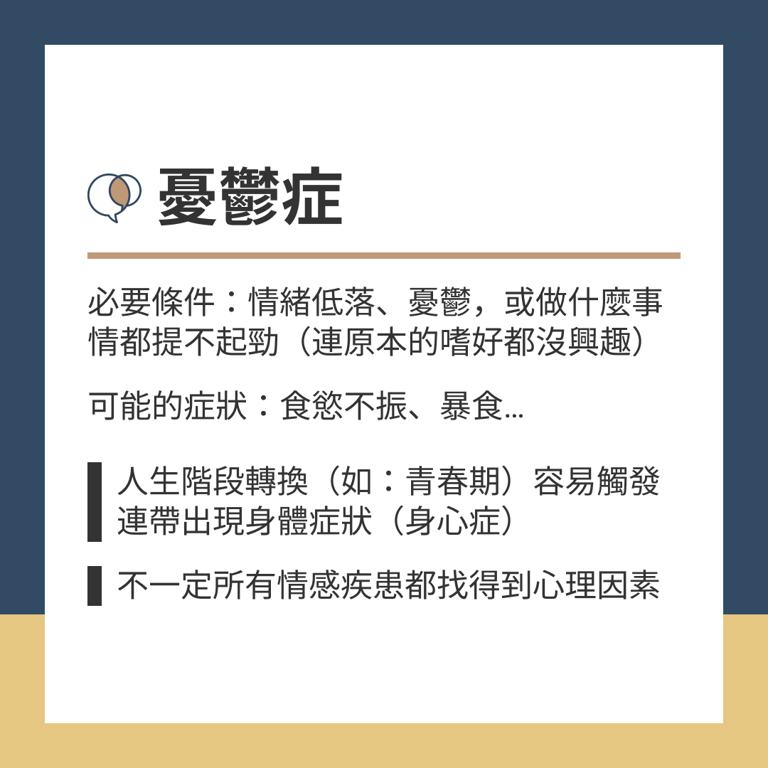人生階段轉換(如:青春期、中年危機、更年期…)容易觸發憂鬱,連帶出現身體症狀(身心症)