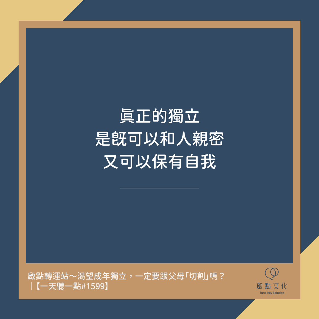 啟點轉運站~渴望成年獨立,一定要跟父母「切割」嗎?|【一天聽一點#1599】