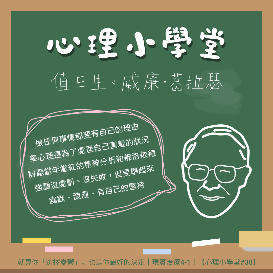 Glasser 曾在討論個案時說:「我實在不懂這個病人已經接受治療四年、換了四個精神科醫師,而且他的祖父已經去世好多年,為什麼還要一直談他的祖父?」