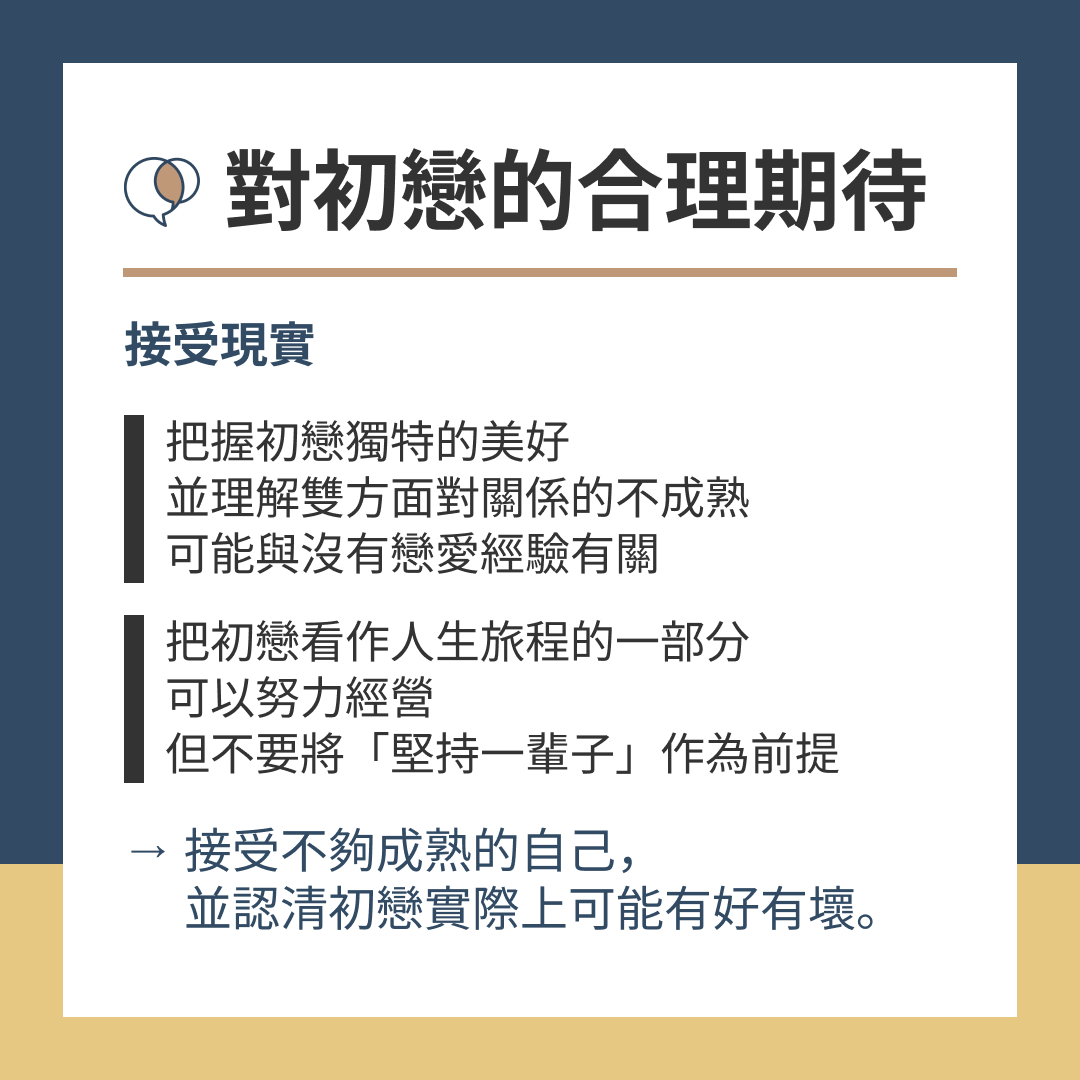 把握初戀獨特的美好,並理解雙方面對關係的不成熟,可能與沒有戀愛經驗有關
