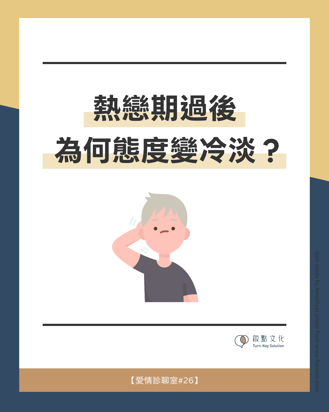小慧試圖體貼小傑,猜想對方只是最近工作壓力大,正在整理自己,甚至告訴自己要給對方空間,要相信他終究會回到最初的樣子。但是日子一天天過去,原本時不時會傳訊息說「好想你」、「晚上做夢夢到你」的小傑,越來越少直接表達愛意,讓小慧忍不住質疑:是不是我做錯了什麼?是不是他不愛了?