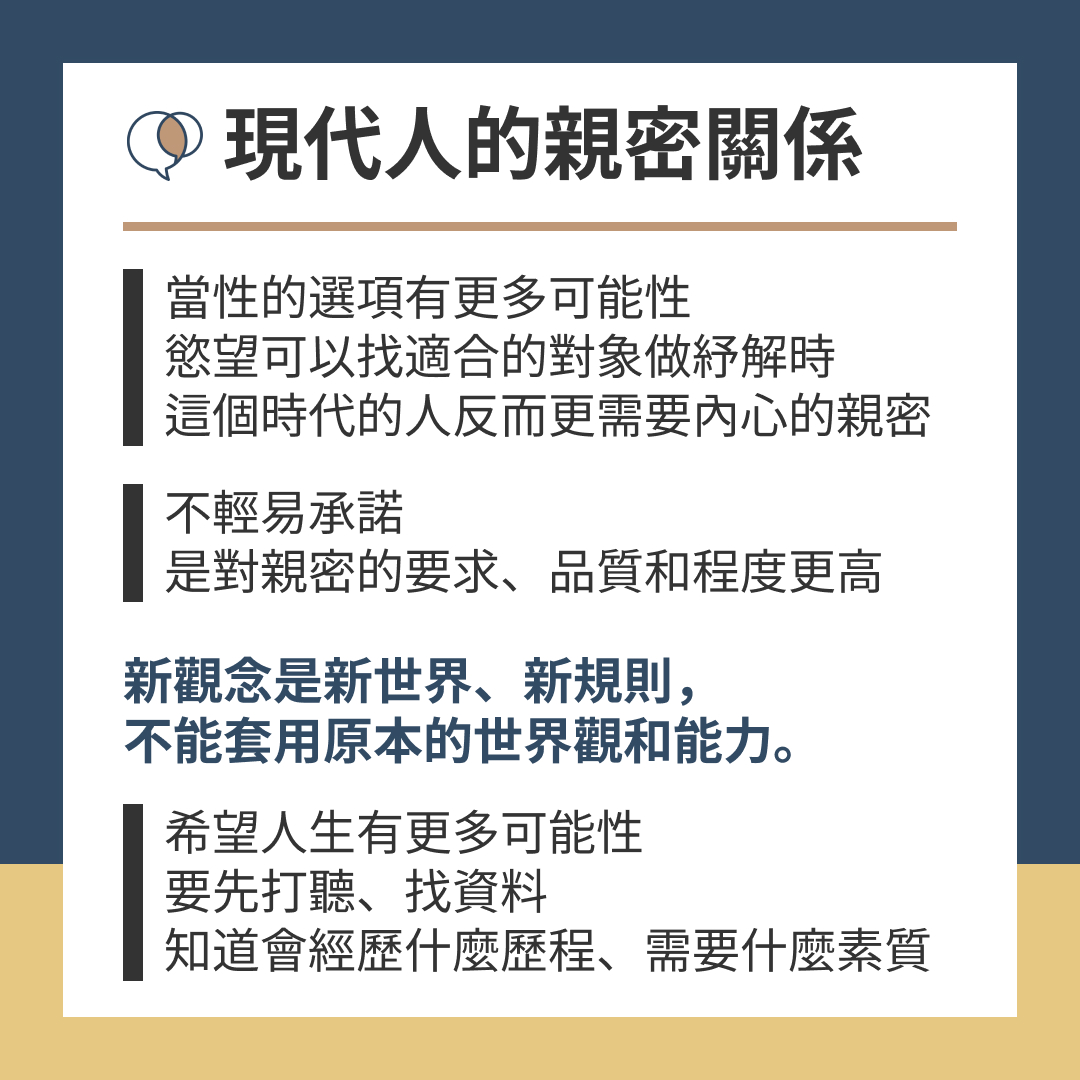 當性的選項有更多可能性,慾望可以找適合的對象做紓解時,這個時代的人,反而更需要內心的親密
