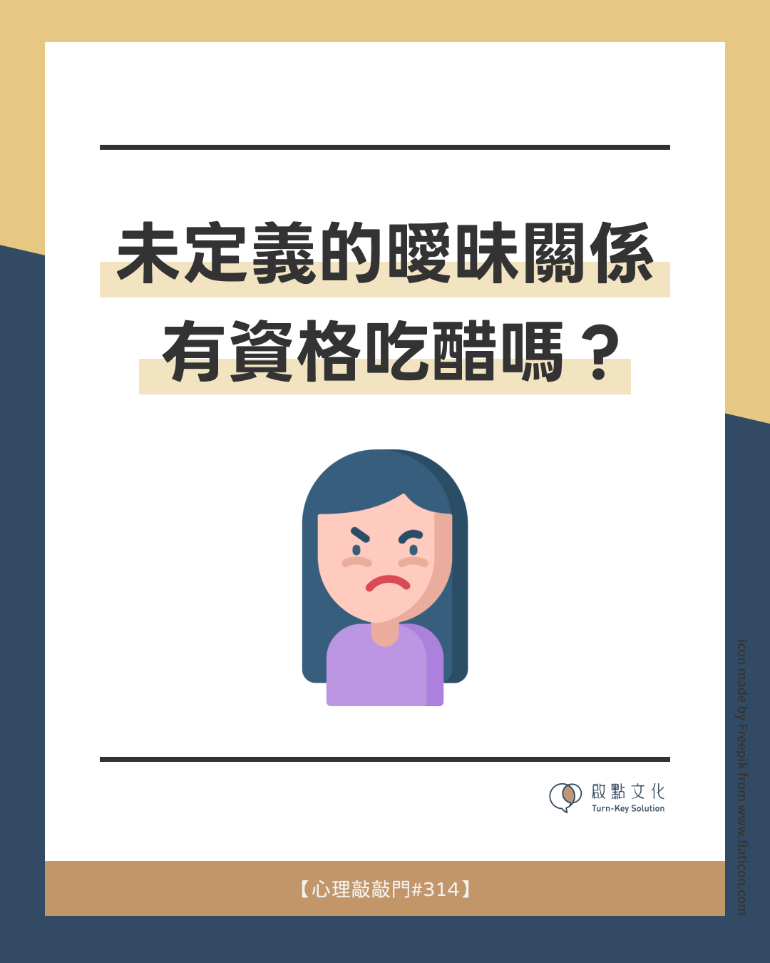 如果曖昧對象跟別人約會,你會怎麼想?明明沒在一起,嘴上也說「我們又沒關係」,心裡卻很在意…你覺得還沒被定義的曖昧關係,有資格對對方吃醋嗎? 本集節目透過阿佑與曖昧對象的故事,深入探討「對曖昧對象吃醋是否合理」以及背後的心理機制。內容拆解心與腦不同步的現象——理智上明白彼此沒有承諾關係,情感上卻早已投入與期待,當對方與他人互動時,自然產生失落與不平衡。節目也說明,吃醋本身並不可恥,關鍵在於如何覺察與消化,而非轉化為佔有慾或指責。透過自我承認孤單與渴望,被拒絕不等於自己不夠好,而是緣分與適合度的問題。適合正在曖昧關係中掙扎、經歷愛而不得,或想理解自己情緒反應的人,學會安頓內在的空缺與期待。