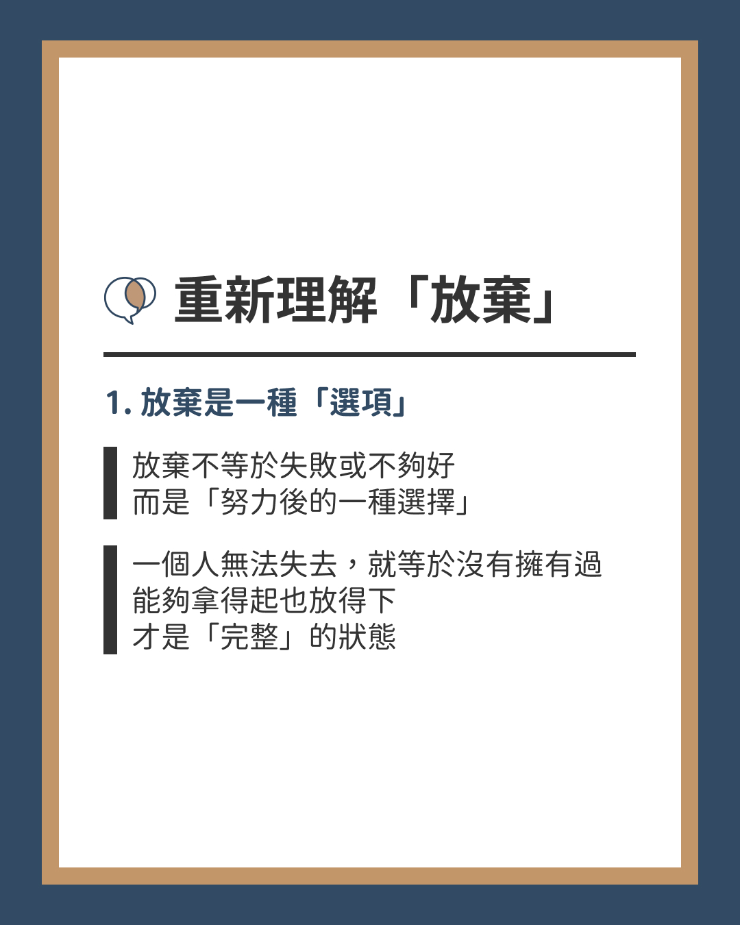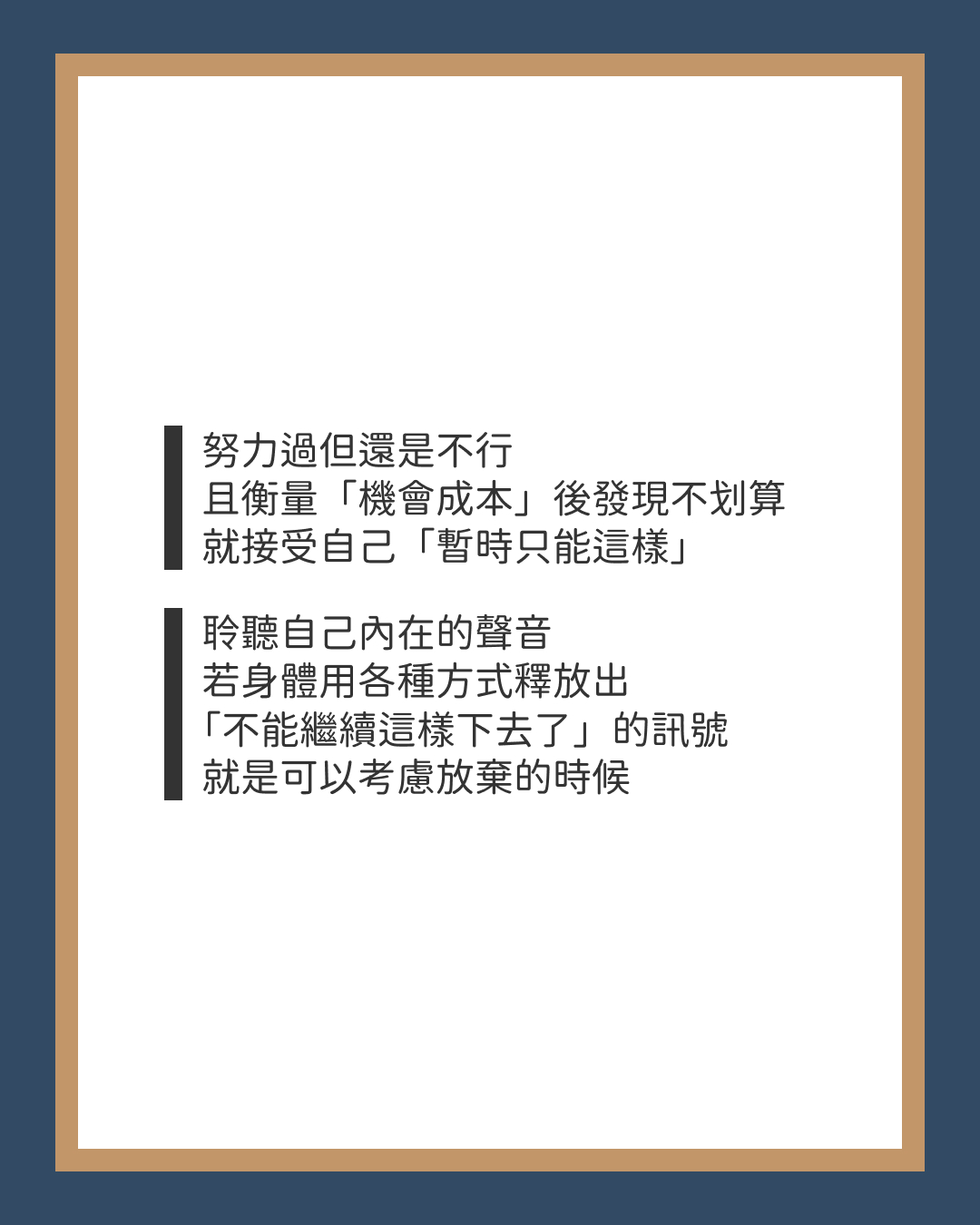 放棄不等於失敗或不夠好,而是「努力後的一種選擇」