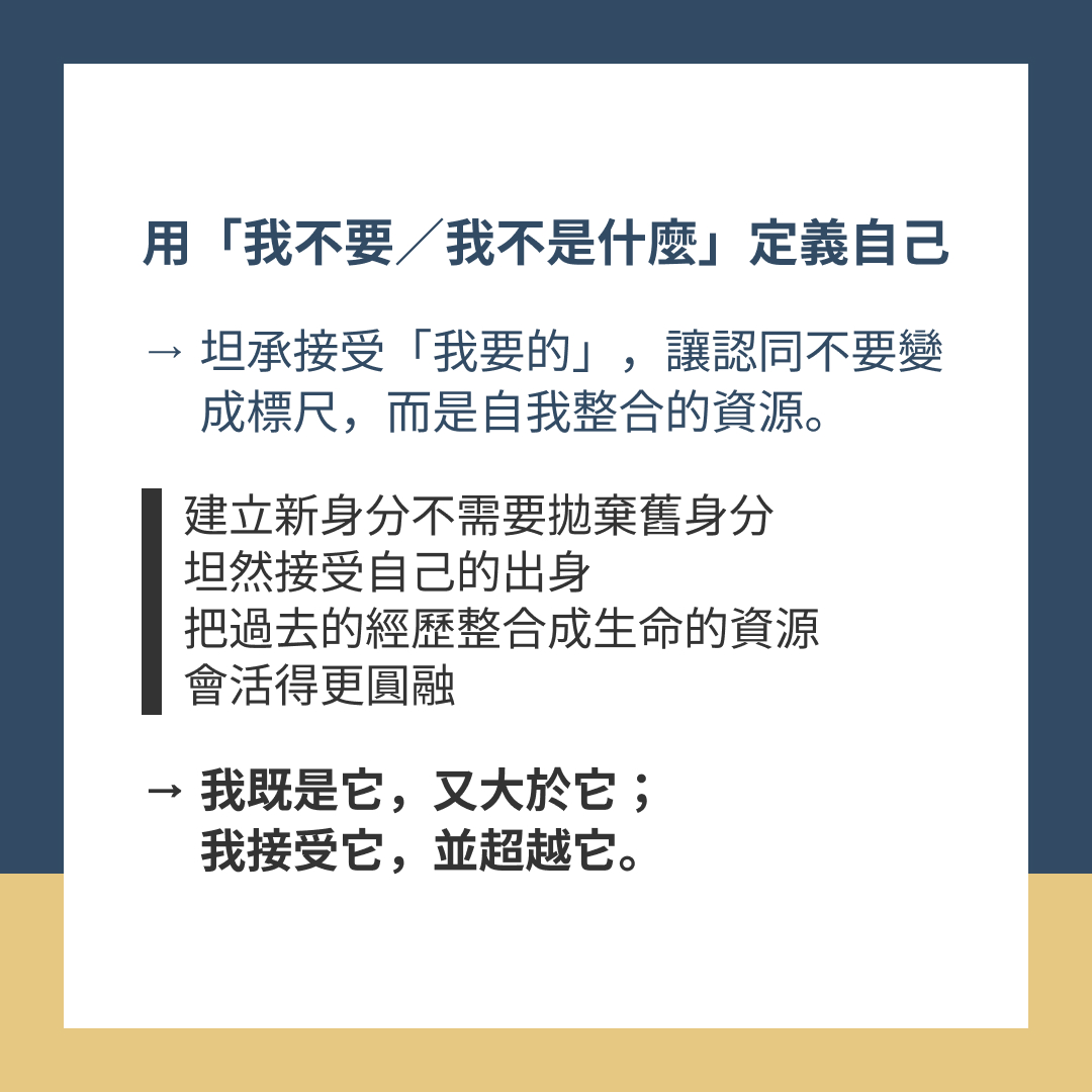→ 坦承接受「我要的」,讓認同不要變成標尺,而是自我整合的資源。