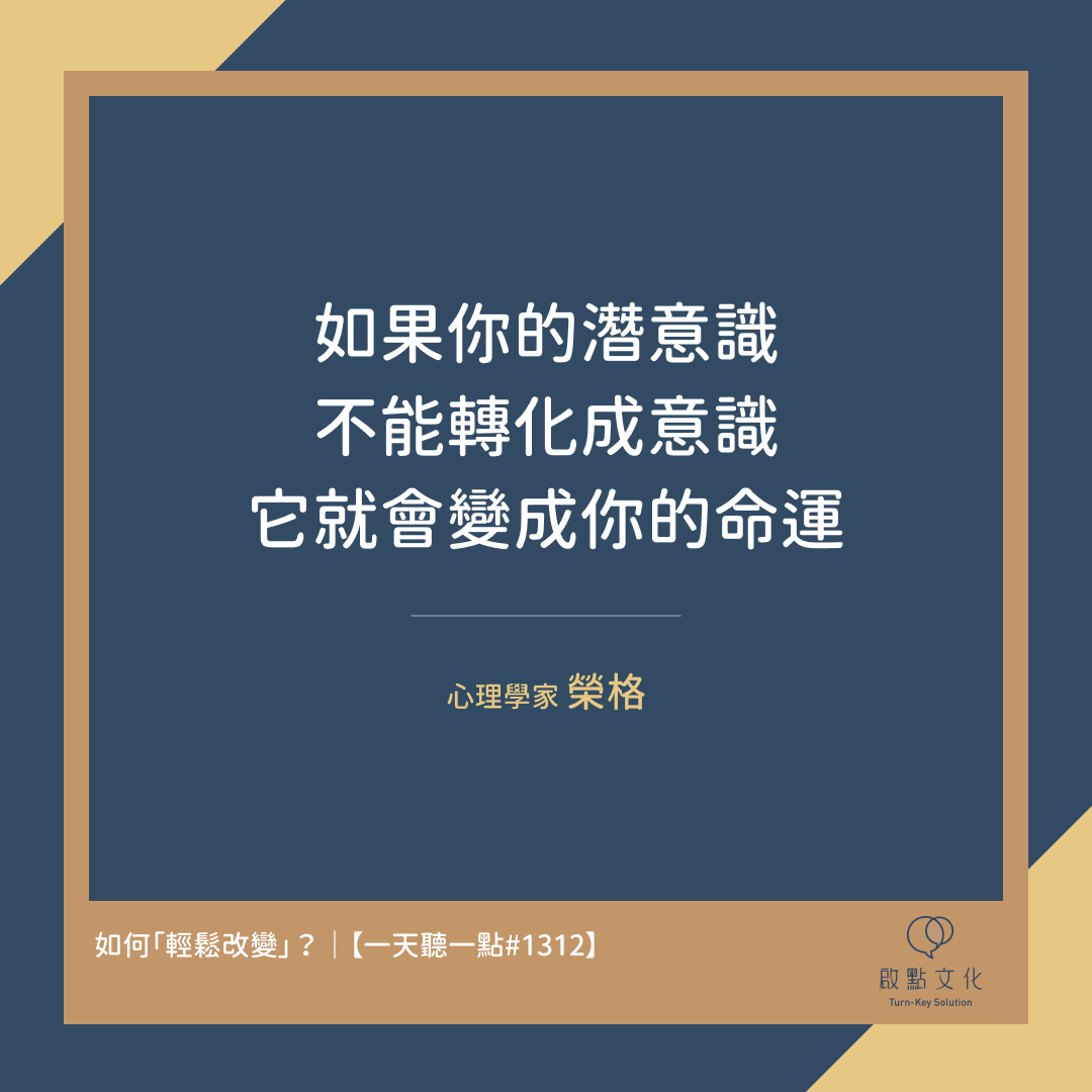 心理學家榮格:「如果你的潛意識不能轉化成意識,它就會變成你的命運。」