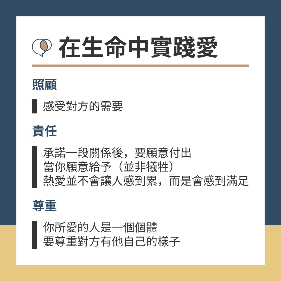 《愛的藝術》提醒我們,很多人以為愛是被需要、被選上,於是努力變成「值得被愛的人」,卻在關係裡慢慢消耗自己。當付出變成犧牲、尊重變成忍耐,愛反而開始讓人疲憊、委屈,甚至失去界線。