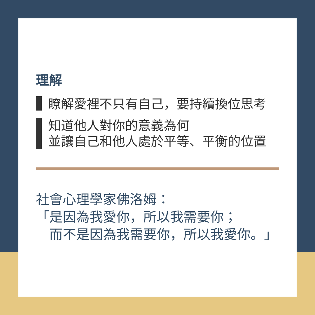 瞭解愛裡不只有自己,要持續換位思考