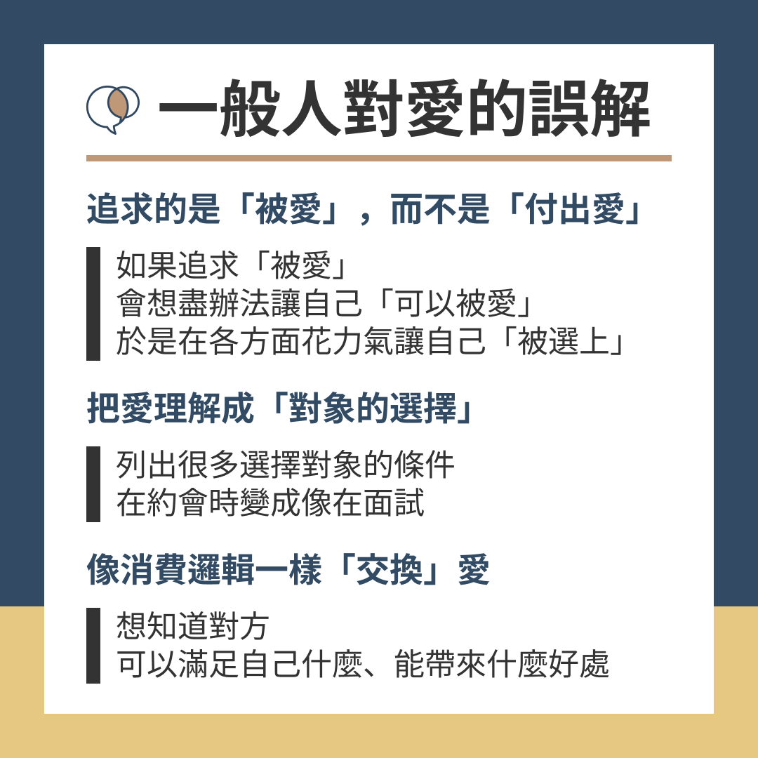佛洛姆曾在愛中受過傷、有過許多迷思與誤解,他花上一輩子的時間,懂得什麼是愛,並寫成《愛的藝術》一書