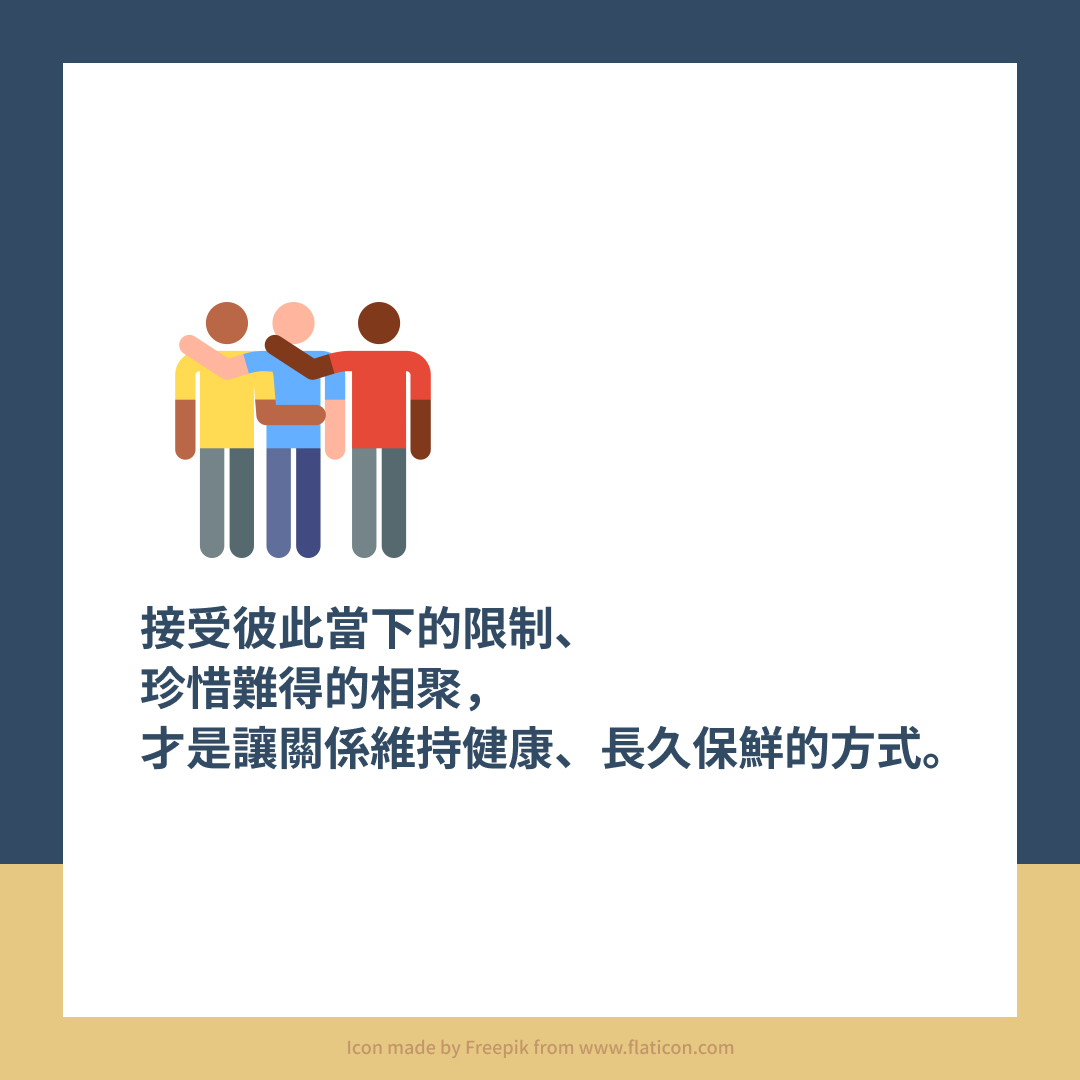 → 接受彼此當下的限制、珍惜難得的相聚,才是讓關係維持健康、長久保鮮的方式。