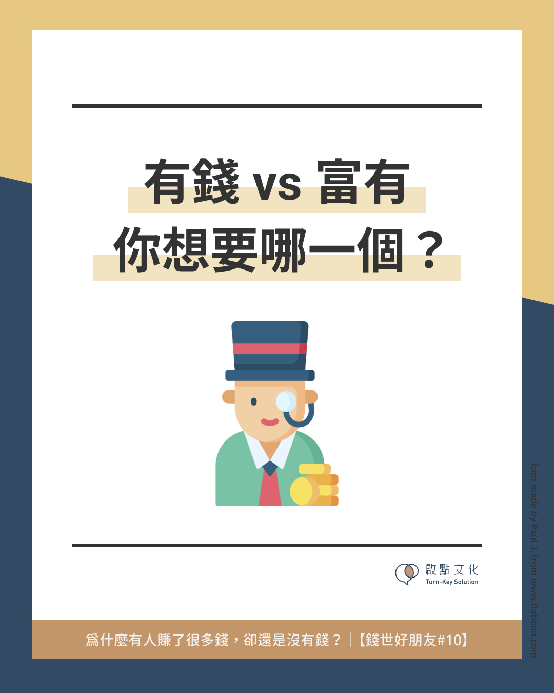→ 你想要當一個有錢(Rich)的人,還是當一個富有(Wealthy)的人?