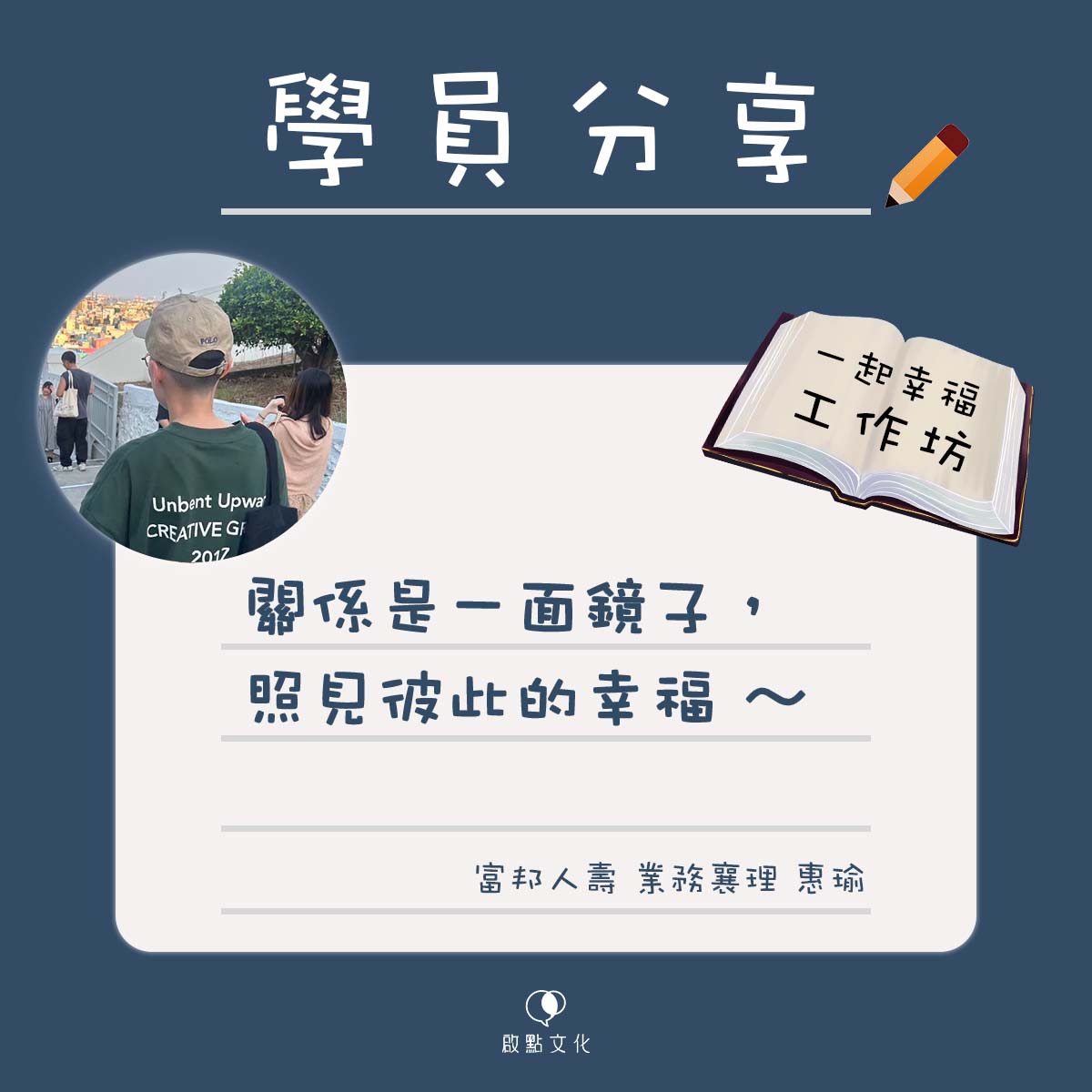 《一起幸福工作坊─學員分享》 關係是一面鏡子,照見彼此的幸福~富邦人壽 業務襄理 惠瑜