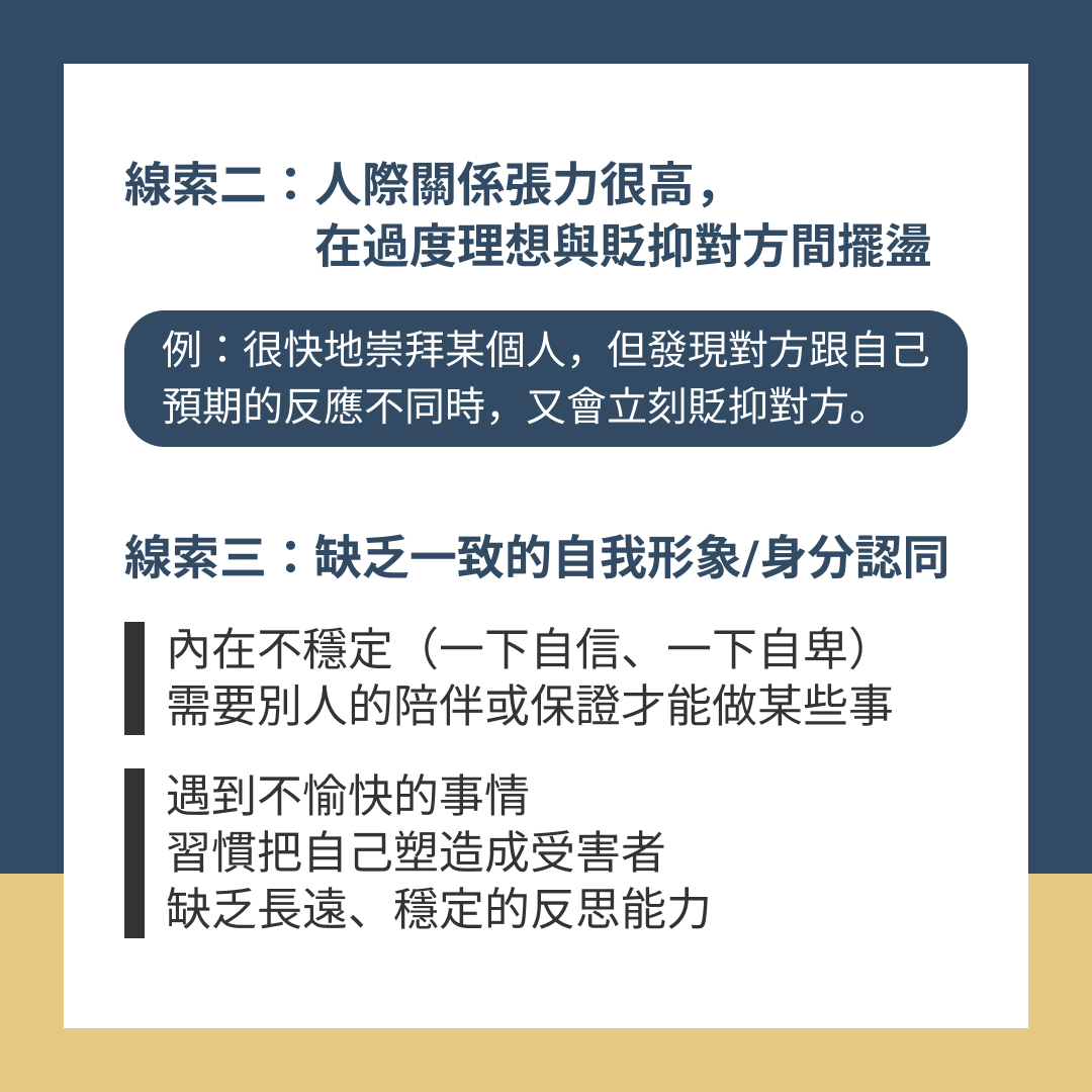 線索二:人際關係張力很高,在過度理想與貶抑對方間擺盪
