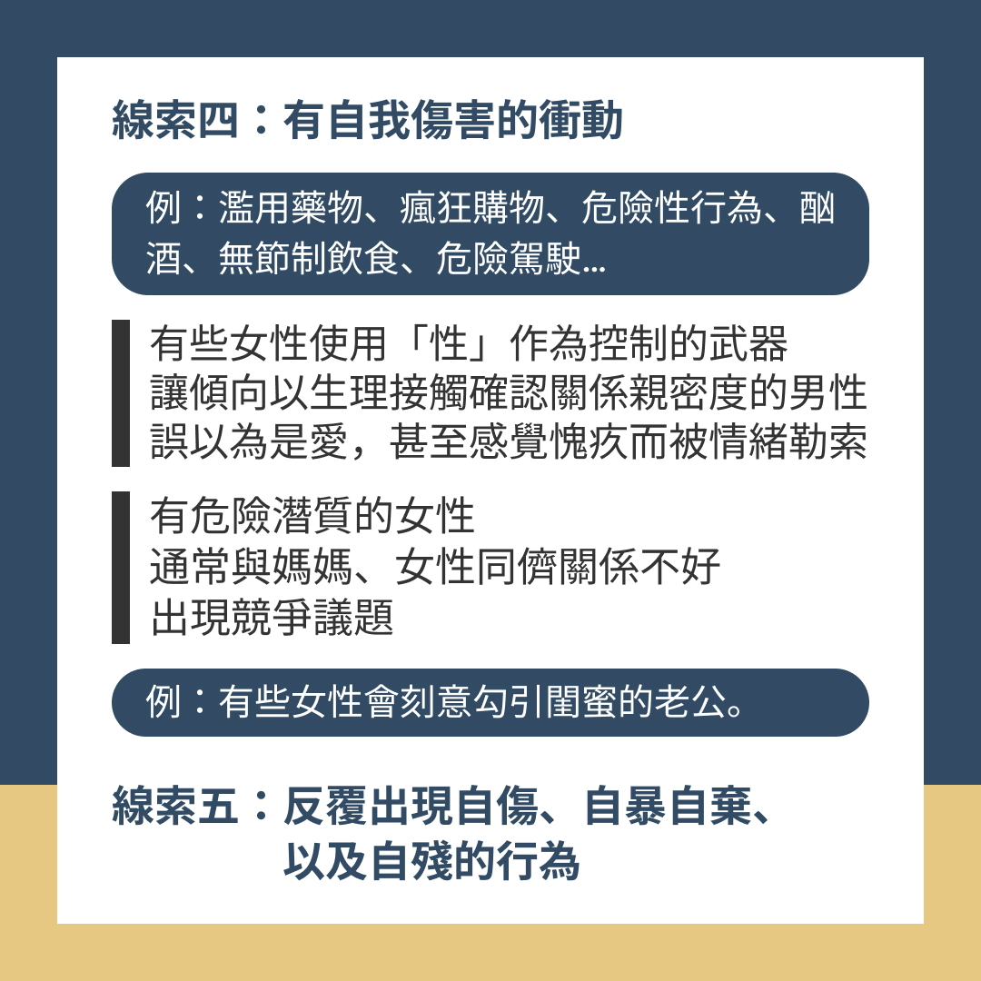線索五:反覆出現自傷、自暴自棄、自殘行為