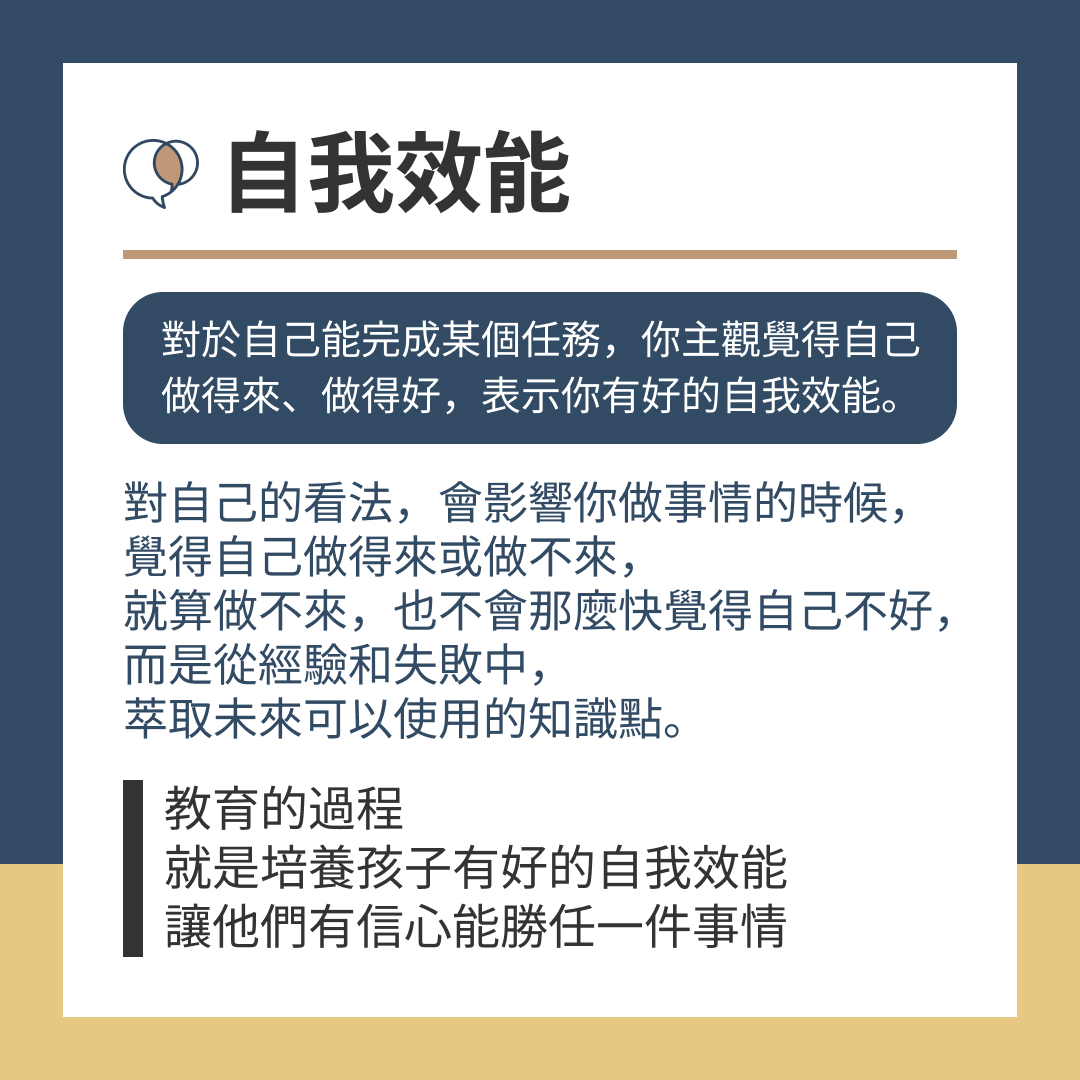 教育的過程,就是培養孩子有好的自我效能,讓他們有信心能勝任一件事情