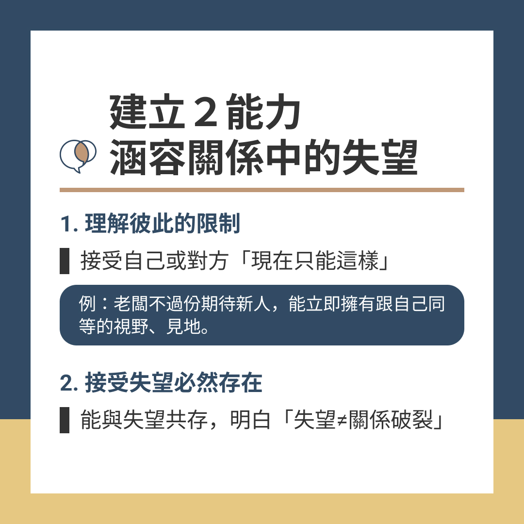 → 人與人之間有差異,因此關係必然會產生失望,我們要學會消化這份情緒。