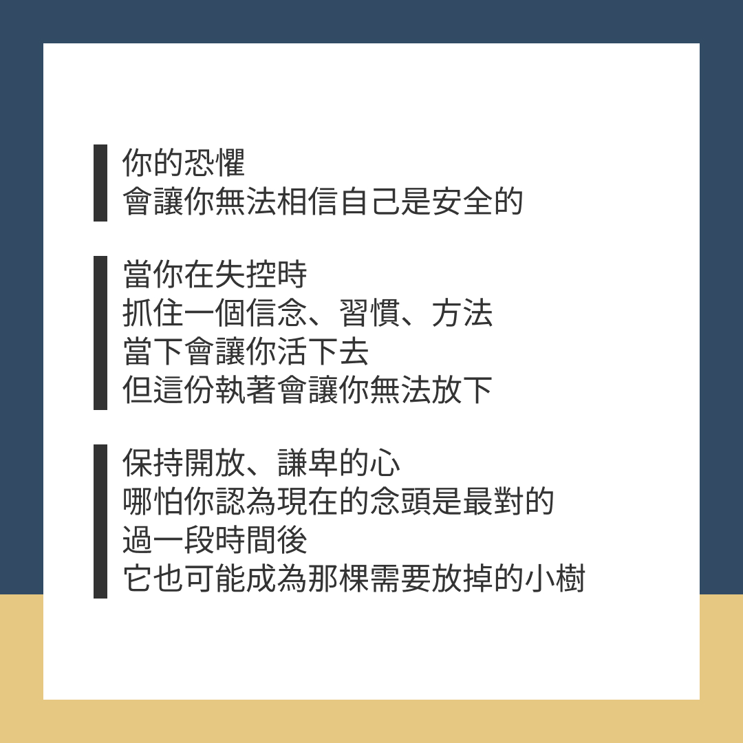 當你在失控時,抓住一個信念、習慣、方法,當下會讓你活下去,但這份執著會讓你無法放下