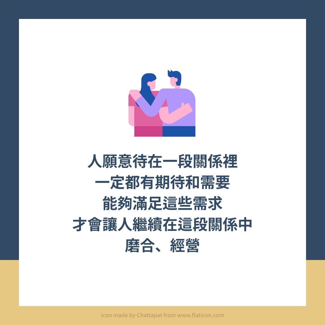 人願意待在一段關係裡,一定都有期待和需要,能夠滿足這些需求,才會讓人繼續在這段關係中磨合、經營。