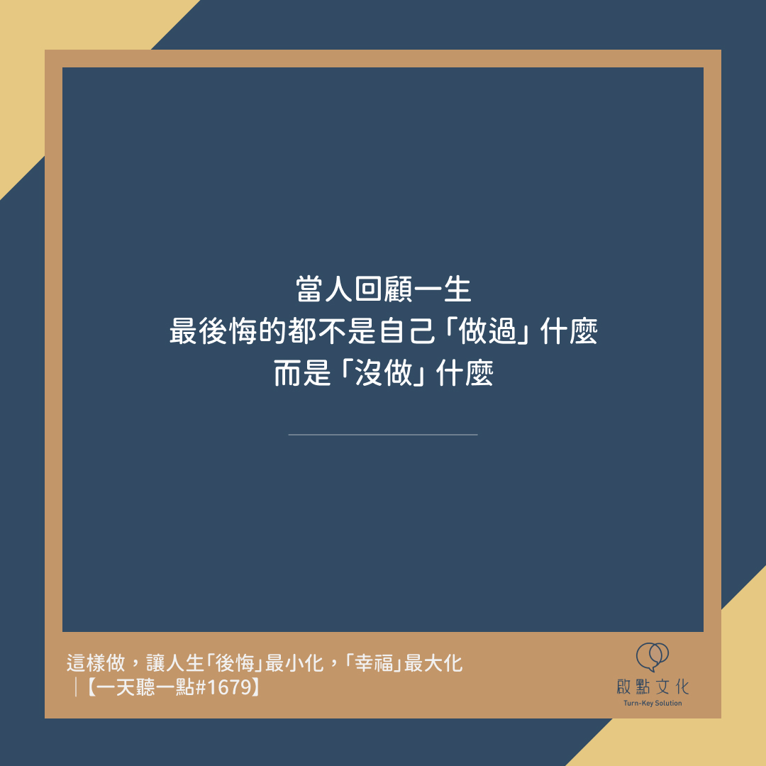 → 當人回顧一生,最後悔的都不是自己「做過」什麼,而是「沒做」什麼。