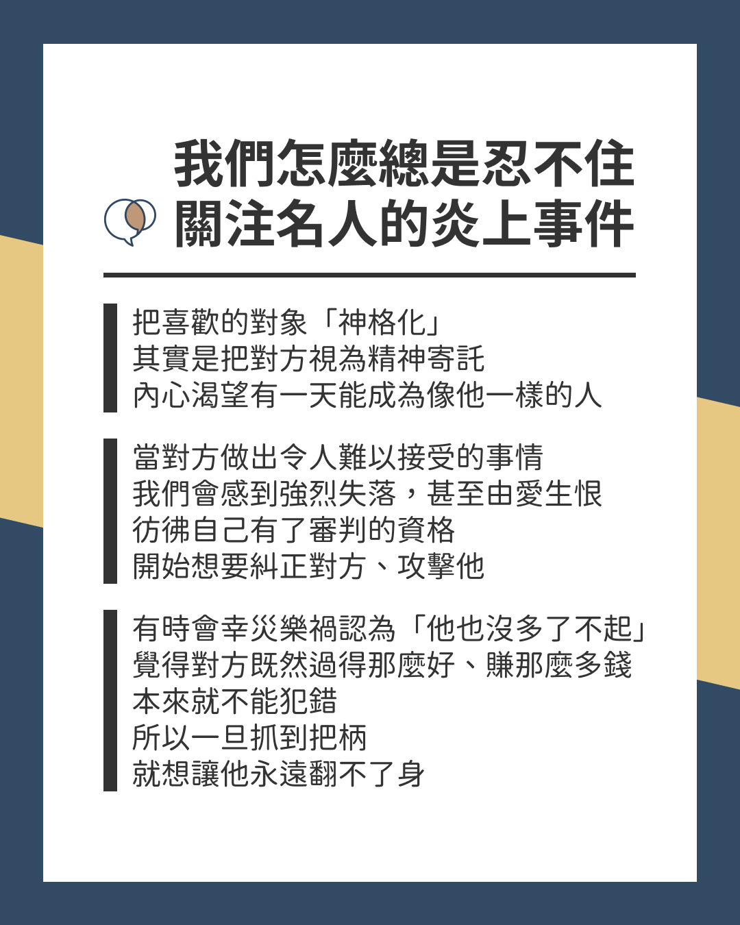 當偶像明星爆發醜聞或爭議事件時,雖然我們會感到震驚、憤怒、失落、難過,但同時也會開始評論、關注後續發展。