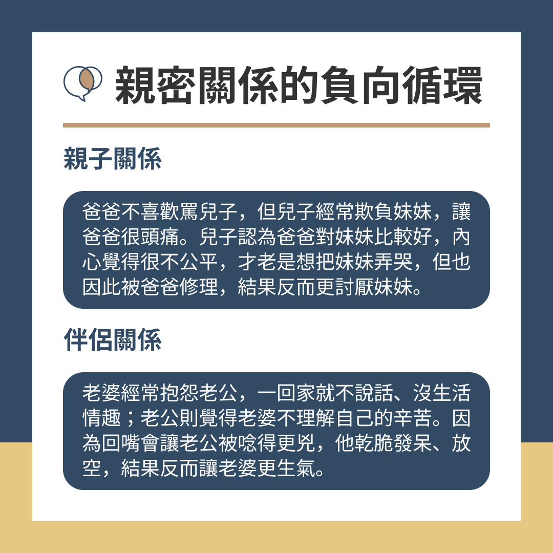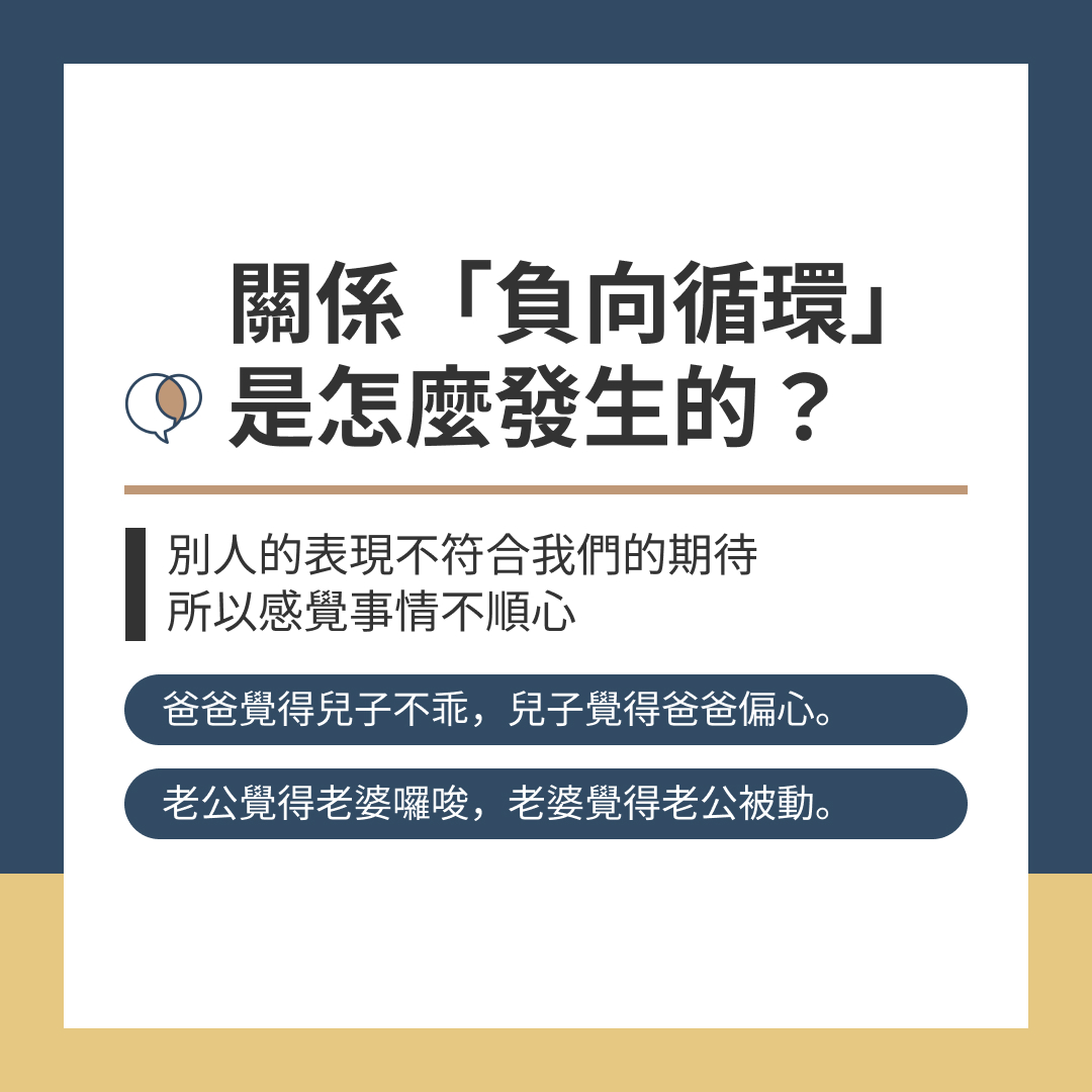 知道關係是雙方的責任,只要有一方能夠做出不一樣的反應,負向循環就有機會被打斷