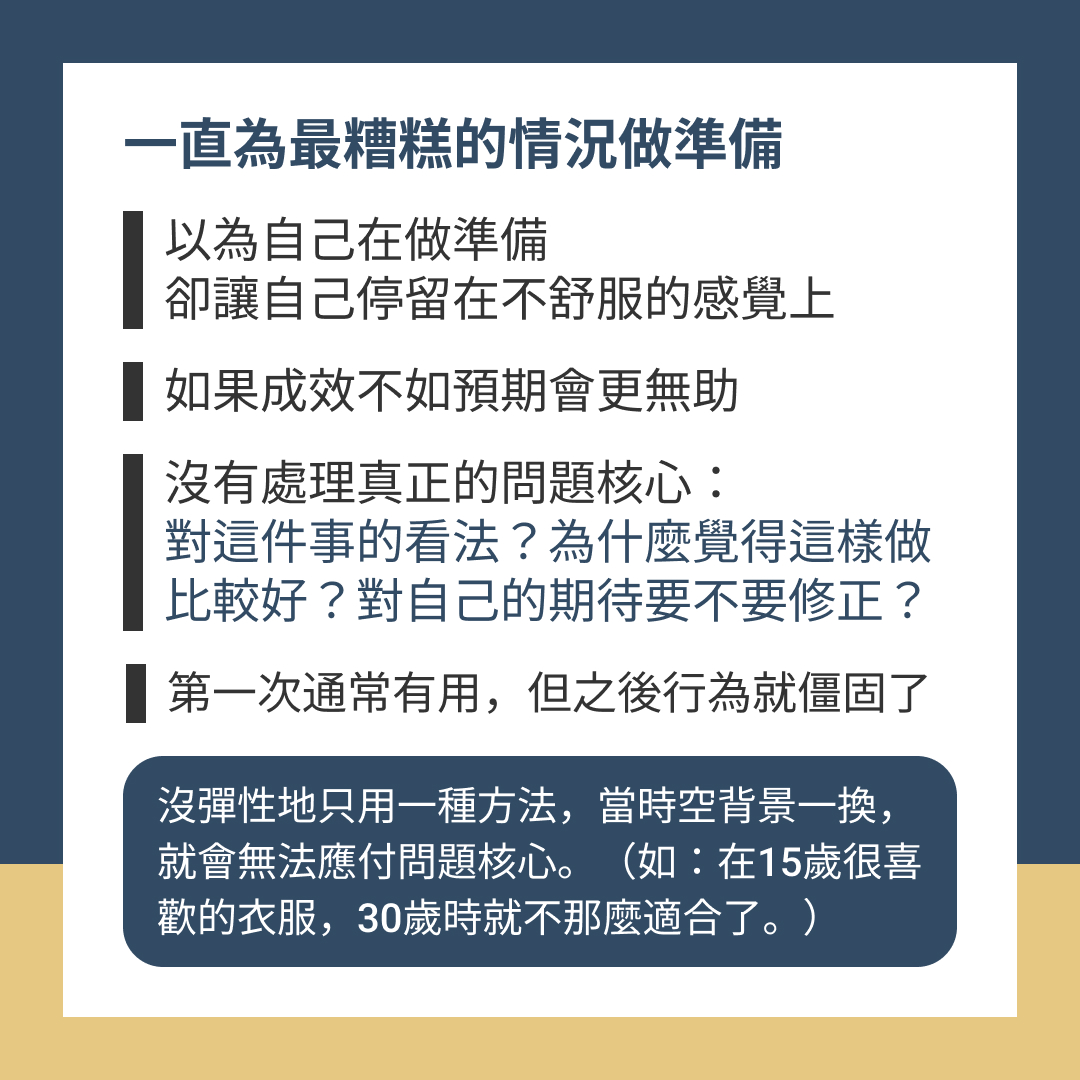 以為自己在做準備,卻讓自己停留在「危險、威脅」不舒服的感覺上。
