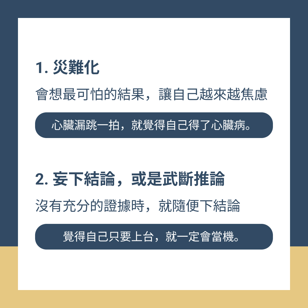 1. 災難化:會去想最可怕的結果,讓自己越來越焦慮