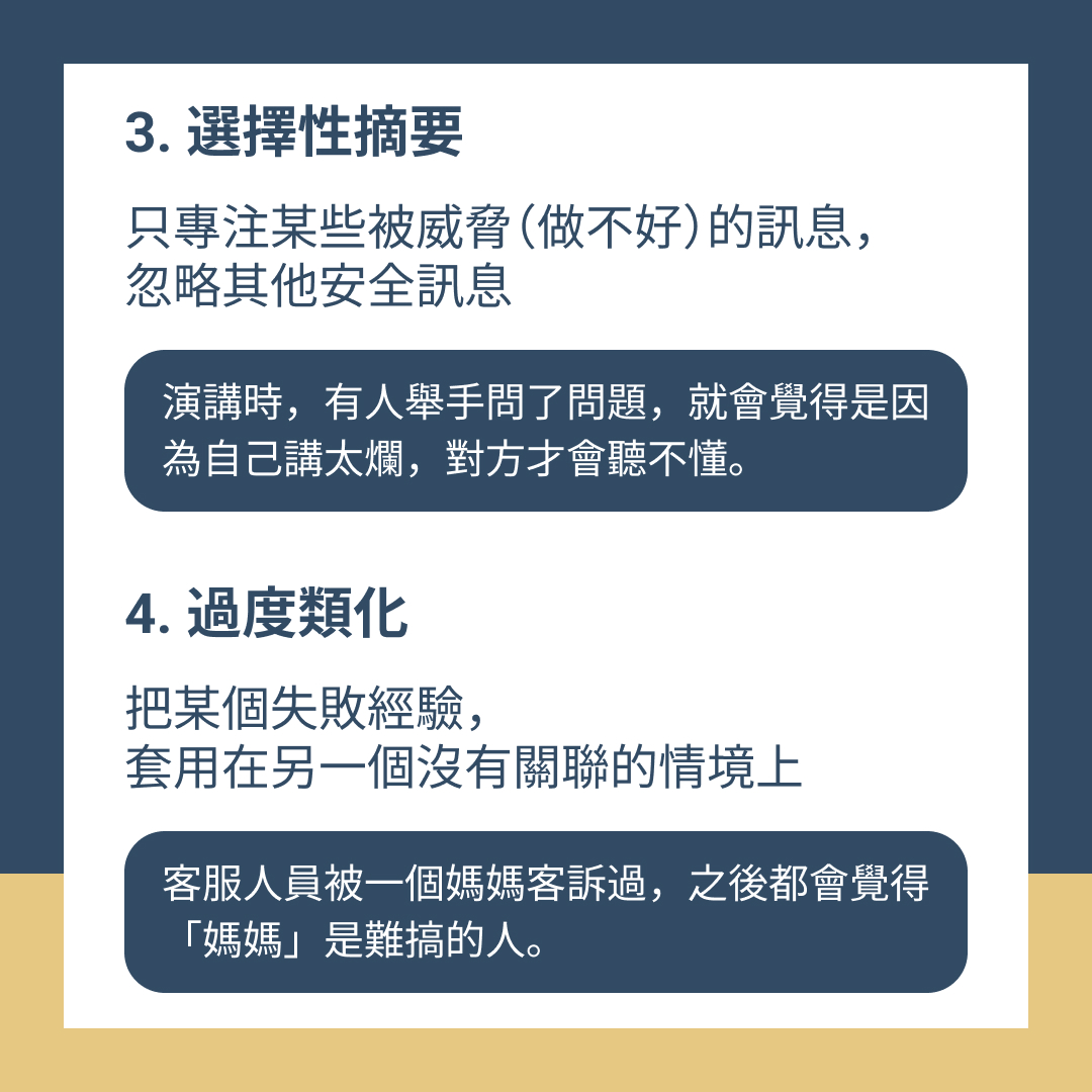 4. 過度類化:把某個失敗經驗,套用在另一個沒有關聯的情境上
