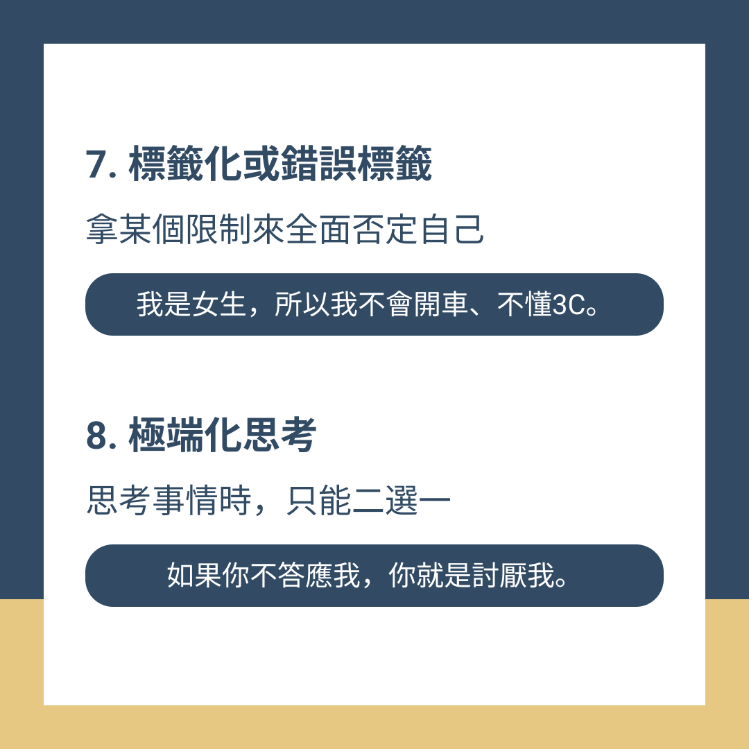 7. 標籤化或錯誤標籤:拿某個限制來全面否定自己