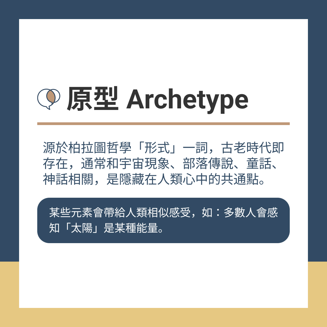 ※ 原型(Archetype),源於柏拉圖哲學「形式」一詞,古老時代即存在,通常和宇宙現象、部落傳說、童話、神話相關,是隱藏在人類心中的共通點