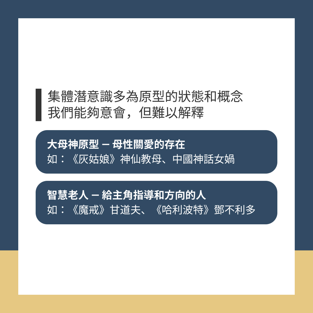 集體潛意識多為原型的狀態和概念,我們能夠意會,但難以解釋