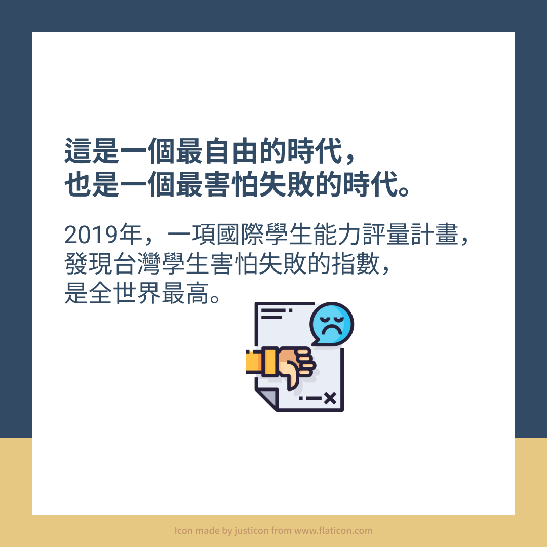 2019年,一項國際學生能力評量計畫,發現台灣學生害怕失敗的指數,是全世界最高。