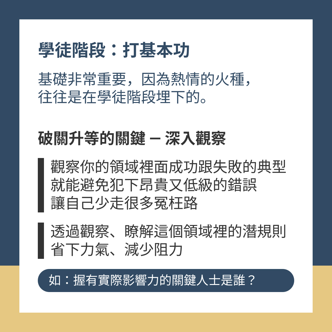 基礎非常重要,因為熱情的火種,往往是在學徒階段埋下的。