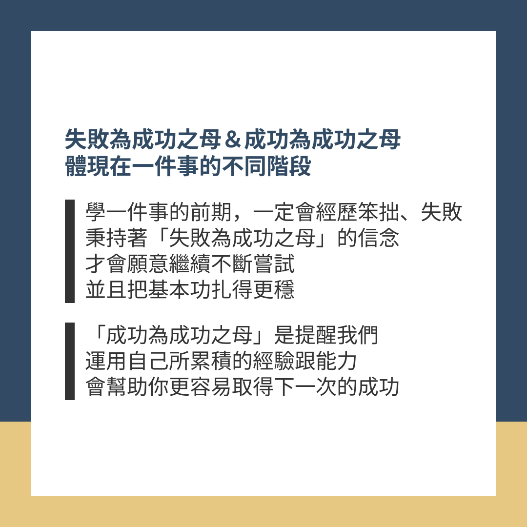「失敗為成功之母」和「成功為成功之母」,體現在一件事的不同階段